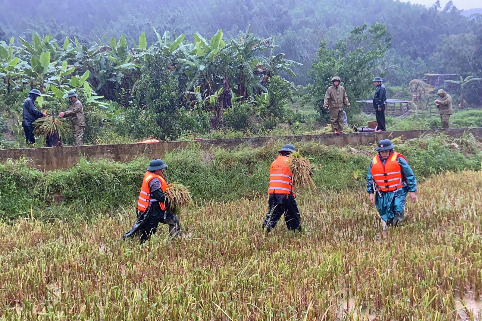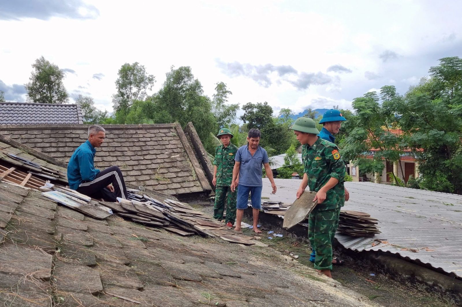 Trong đó, tại xã A Lưới 1, Đồn Biên phòng cửa khẩu Hồng Vân tiếp tục hỗ trợ nhân dân thu hoạch diện tích lúa vụ hè thu; các Đồn Biên phòng Vinh Hiền và Vinh Xuân huy động lực lượng khẩn trương lợp lại mái nhà cho các hộ dân bị tốc mái do bão gây ra.