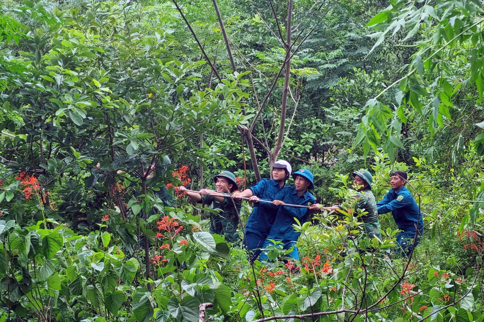 Đồn Biên phòng Vinh Hiền phối hợp cưa cây, đảm bảo giao thông tại tuyến đường liên thôn xã Vinh Lộc.