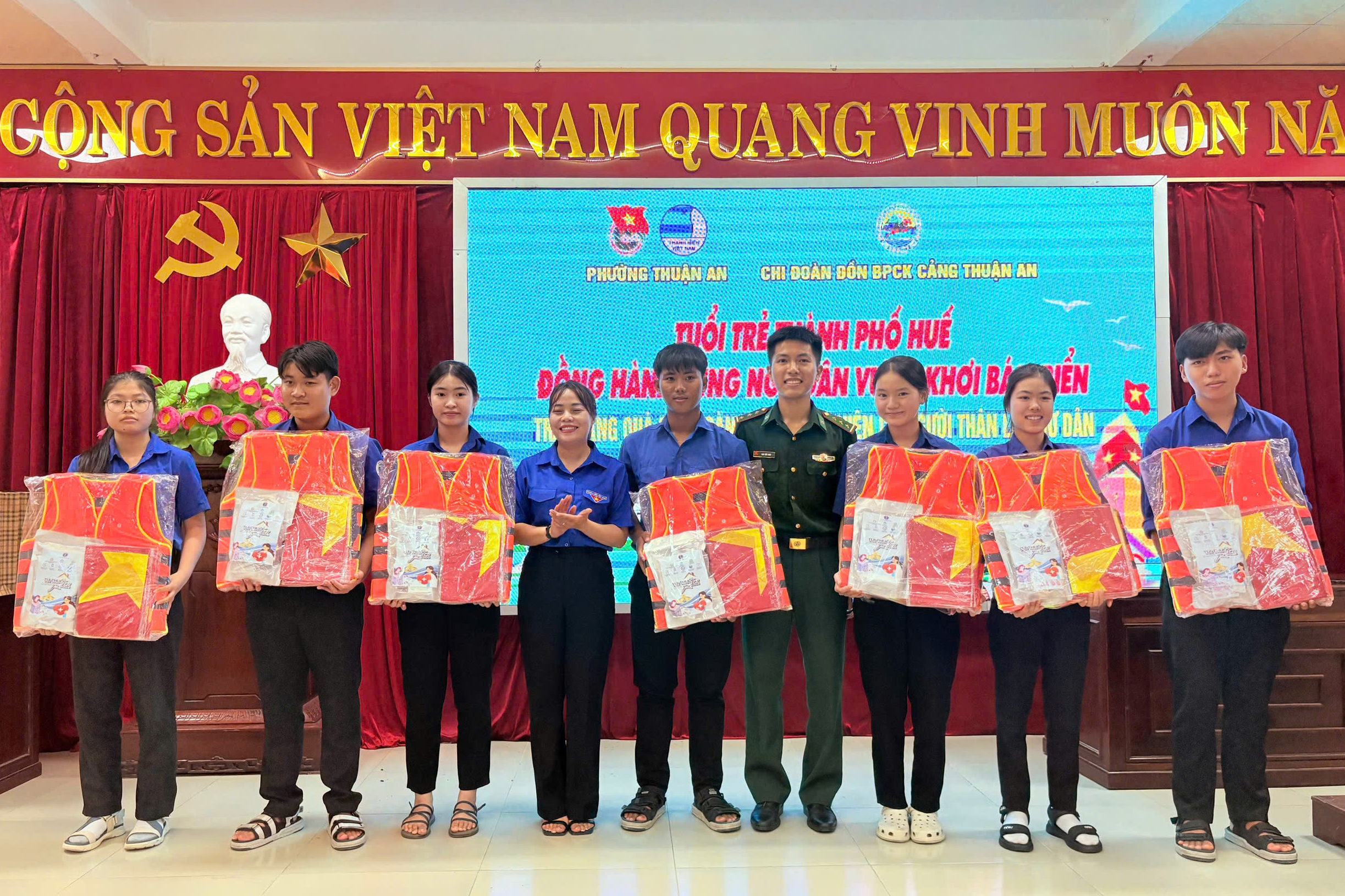 Kết thúc buổi tuyên truyền, Chi đoàn Đồn Biên phòng cửa khẩu cảng Thuận An đã trao tặng 25 suất quà (mỗi suất gồm: 1 áo phao, 1 túi thuốc gia đình và 10 lá cờ Tổ quốc) cho đoàn viên, thanh niên có người thân là ngư dân. Những phần quà thiết thực này không chỉ hỗ trợ, động viên thanh niên và gia đình trong công tác bảo đảm an toàn trên biển mà còn khích lệ tinh thần vươn khơi, bám biển, góp phần bảo vệ chủ quyền biển, đảo của Tổ quốc.