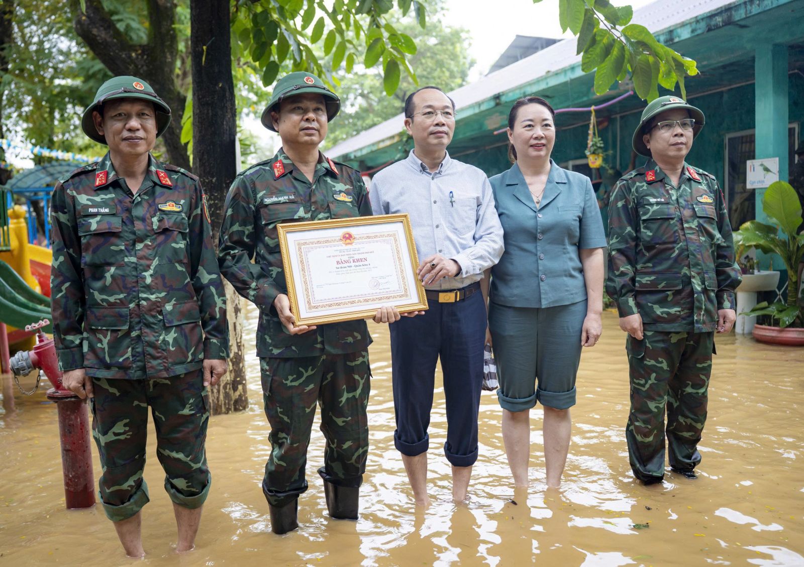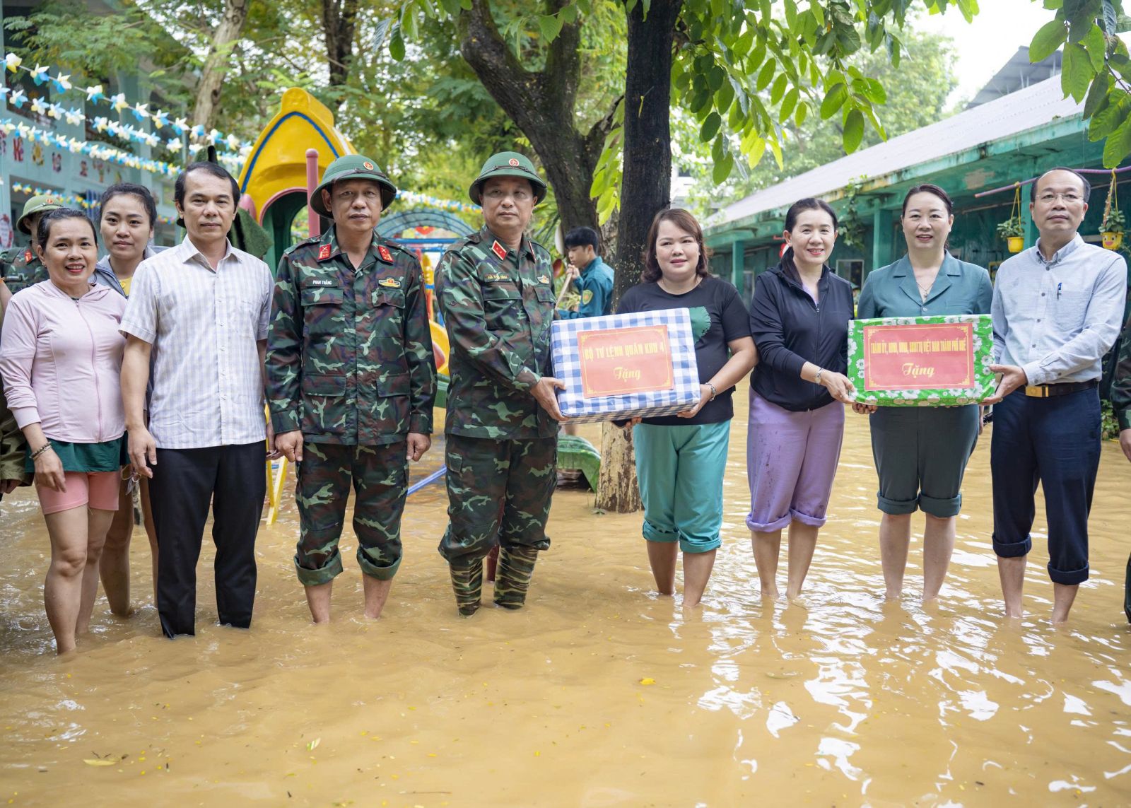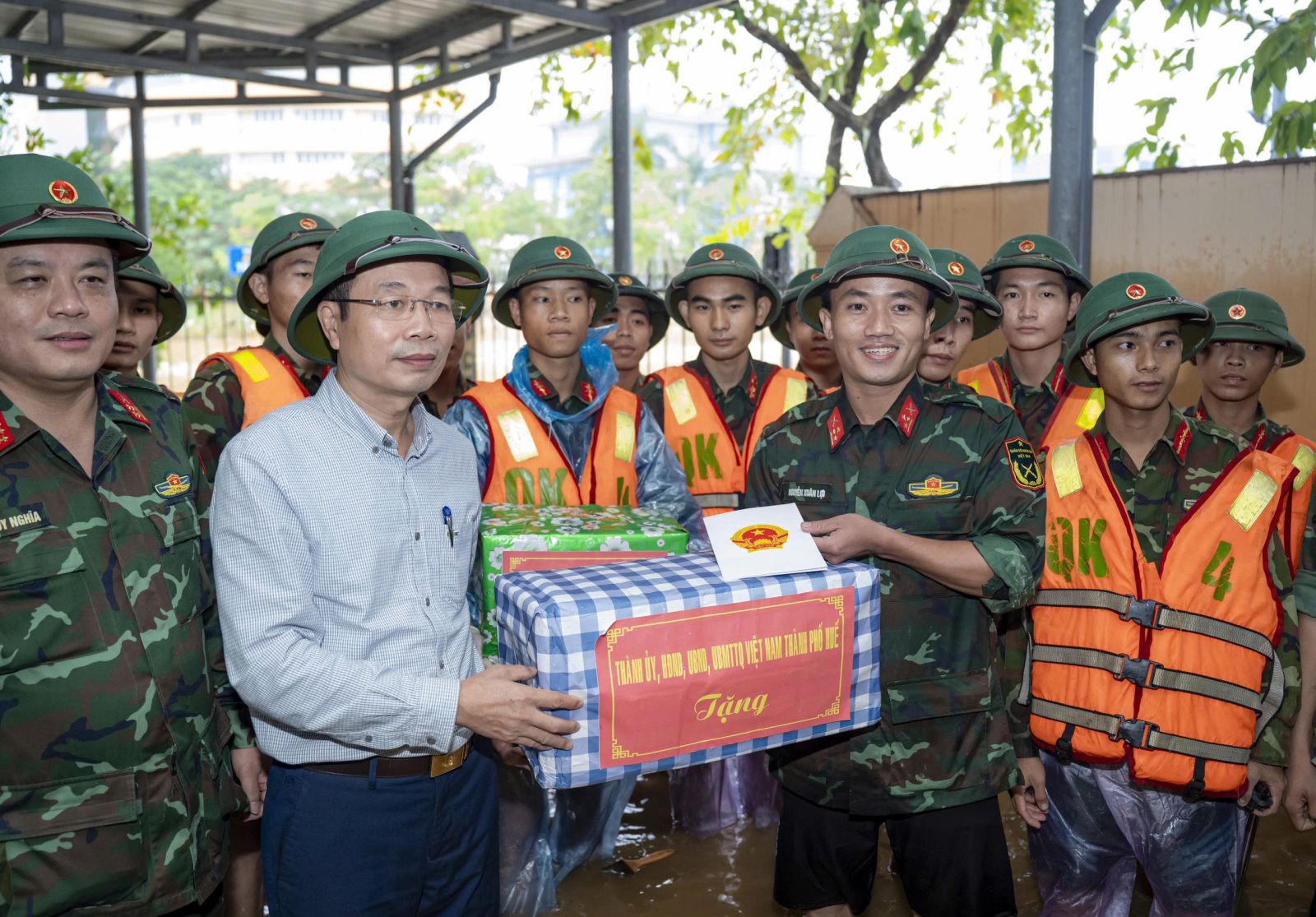 Dịp này, Trung tướng Hà Thọ Bình, Tư lệnh Quân khu đã trao tặng các phần quà động viên cán bộ, chiến sĩ trực tiếp làm nhiệm vụ giúp dân khắc phục hậu quả mưa lũ, đồng thời trao quà, gửi lời thăm hỏi, chia sẻ tới các giáo viên, y bác sĩ, tiểu thương chịu thiệt hại do thiên tai, mong muốn các tập thể sớm ổn định hoạt động, tiếp tục đồng hành cùng địa phương vượt qua khó khăn. Cũng tại buổi làm việc, đồng chí Phan Quý Phương, Phó Chủ tịch Ủy ban nhân dân thành phố Huế đã trao Bằng khen của Chủ tịch Ủy ban nhân dân thành phố Huế tặng cán bộ, chiến sĩ Sư đoàn 968 vì đã có thành tích xuất sắc trong công tác phòng chống và khắc phục hậu quả mưa lũ trên địa bàn, góp phần cùng chính quyền và nhân dân thành phố sớm khôi phục cuộc sống bình thường sau thiên tai.