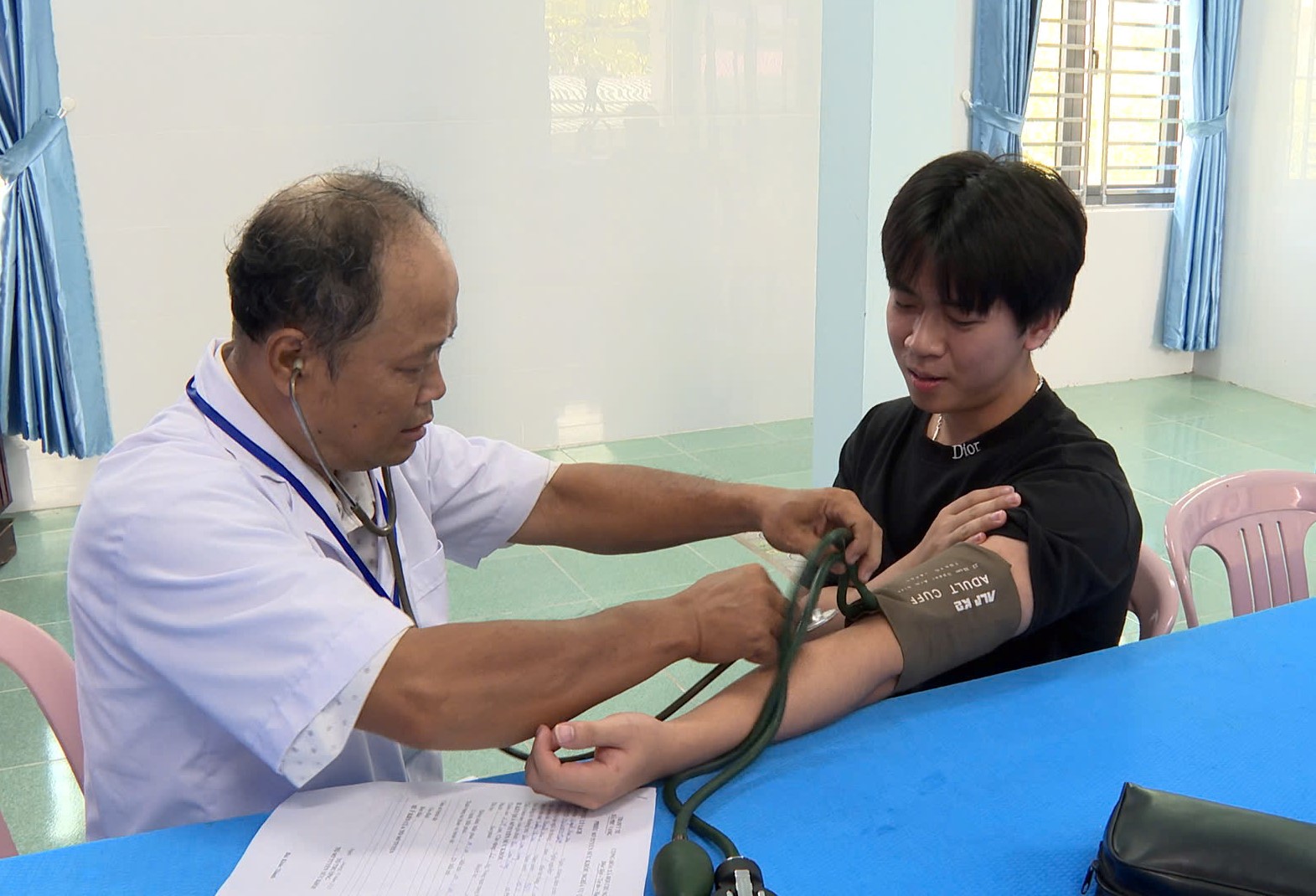 Đội ngũ y tế kiểm tra sức khoẻ đo huyết áp cho thanh niên