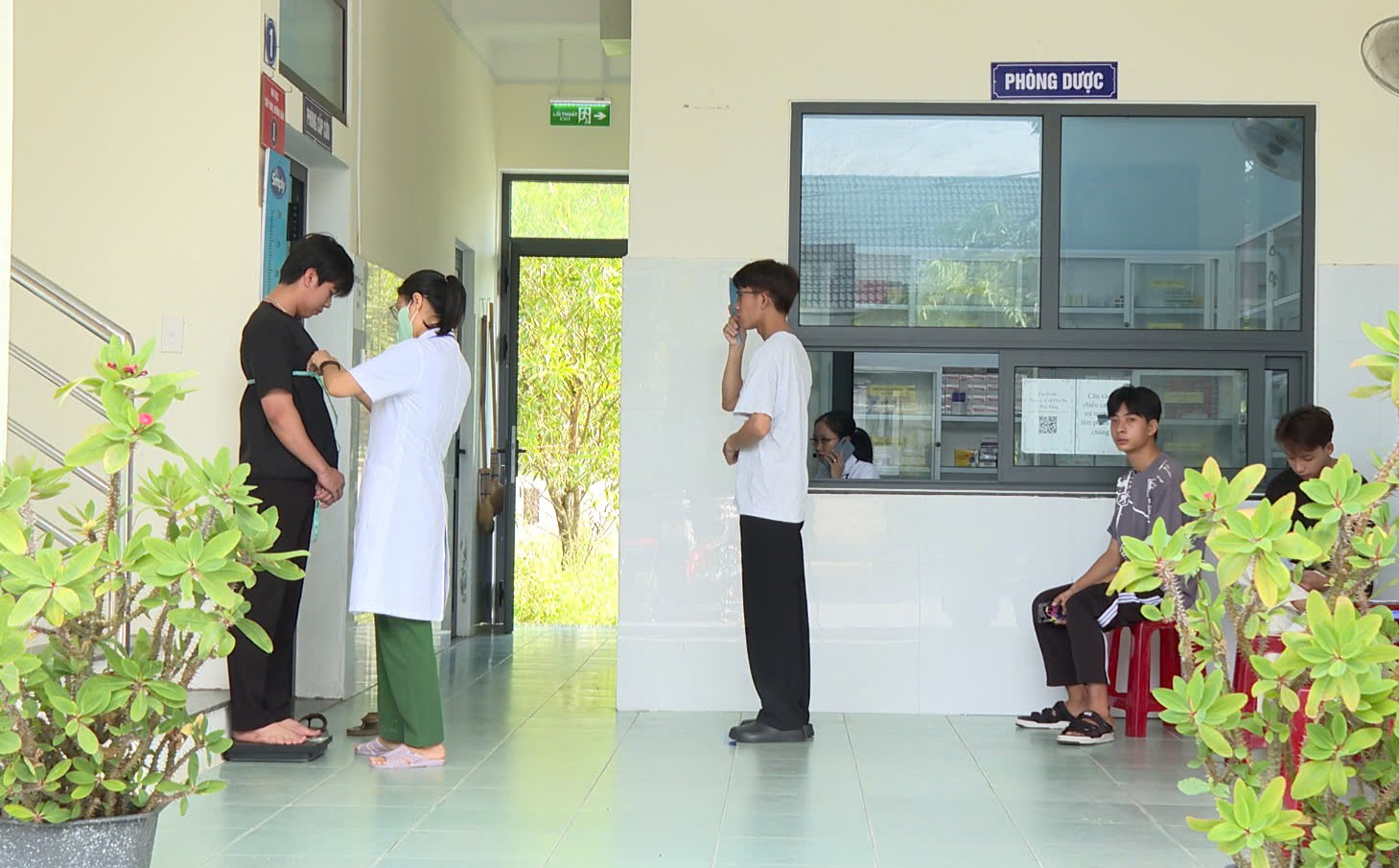 Đội ngũ y tế kiểm tra thị lực, chiều cao, cân nặng cho các thanh niên