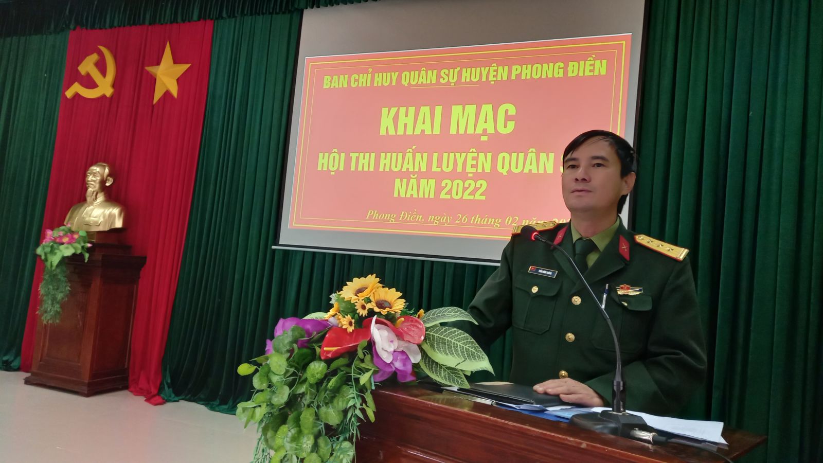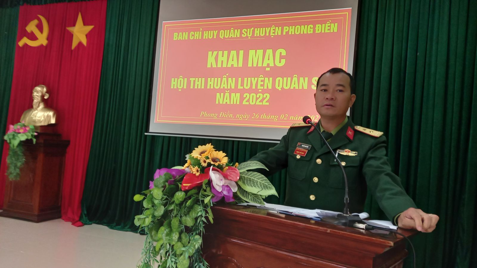 Ngày 26/02, Ban Chỉ huy Quân sự huyện Phong Điền tổ chức Hội thi Huấn luyện Quân sự năm 2022. Tham gia hội thi có 29 thí sinh là Chỉ huy trưởng, Phó Chỉ huy trưởng các xã, thị trấn trên địa bàn huyện.