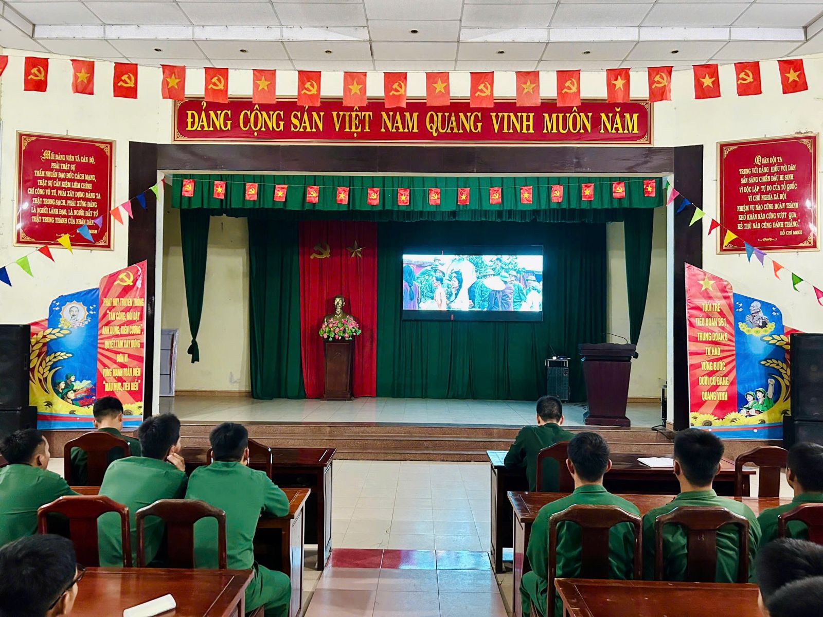 Cán bộ, chiến sĩ chăm chú thưởng thức bộ phim