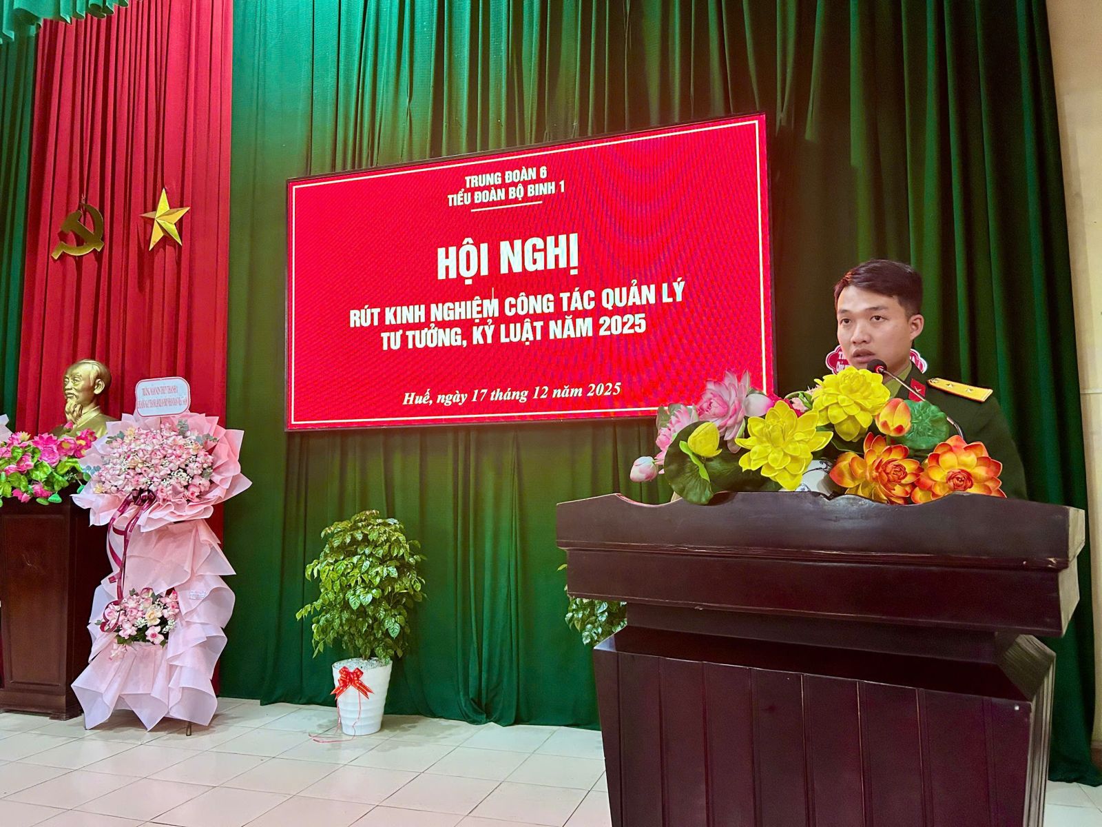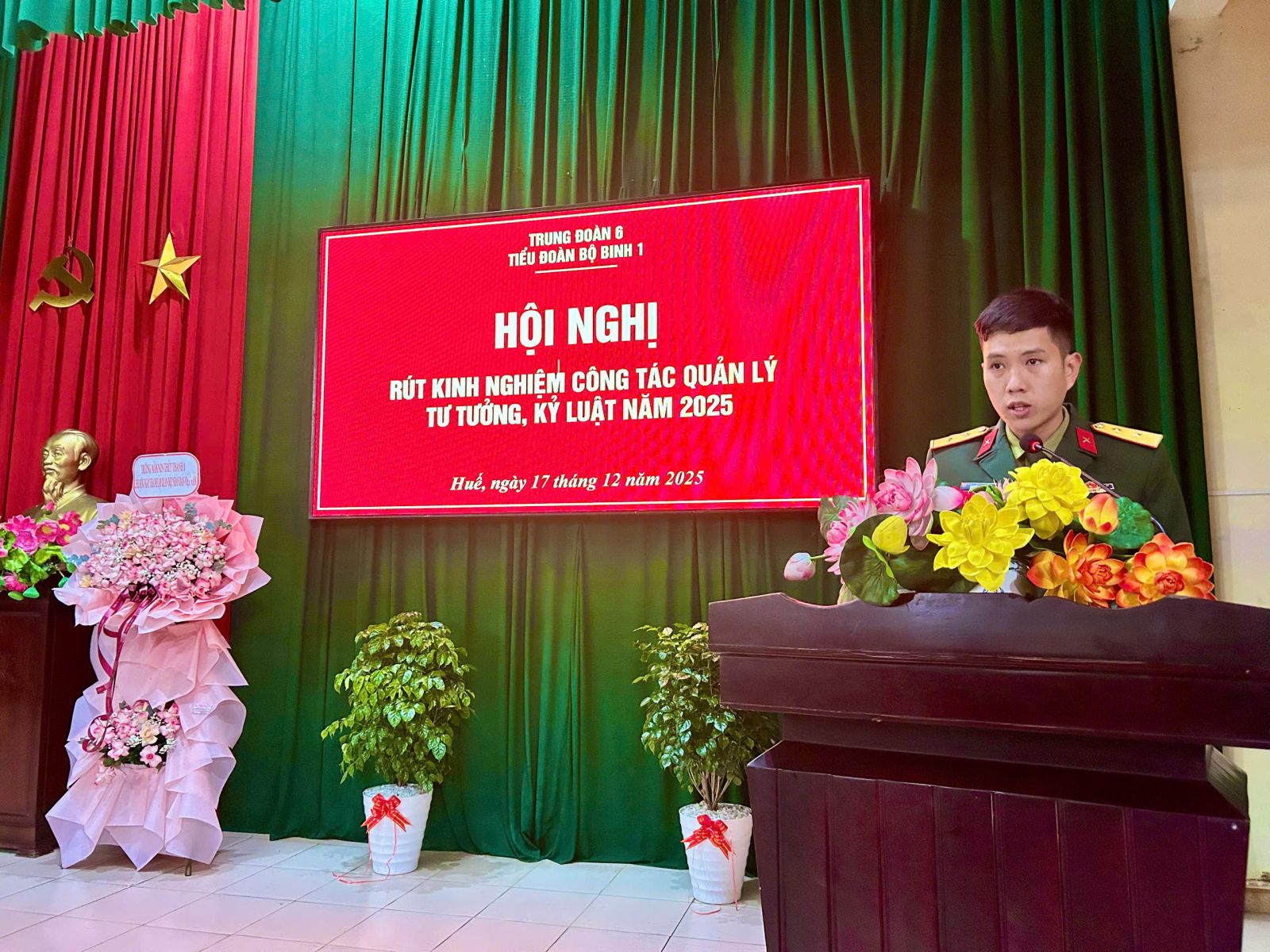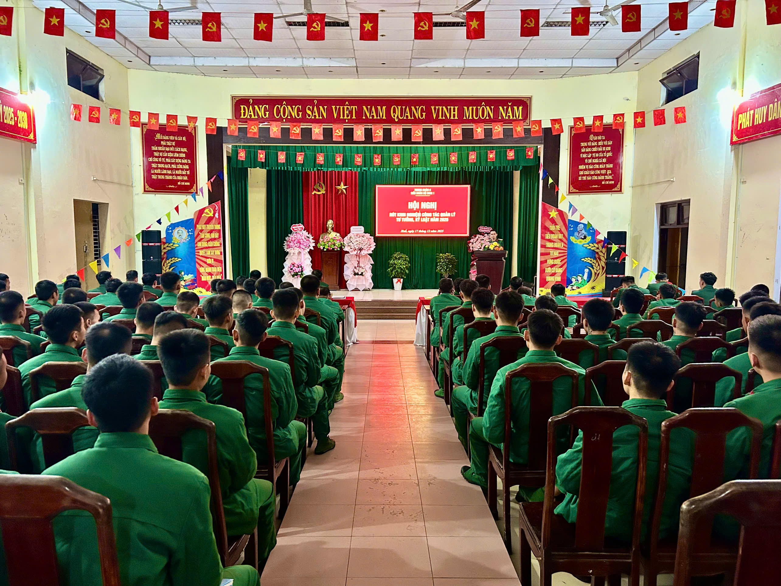 Tối ngày 17/12, Tiểu đoàn bộ binh (BB)1 - Trung đoàn 6 tổ chức Hội nghị rút kinh nghiệm công tác quản lý tư tưởng, kỷ luật năm 2025 và học tập, quán triệt, triển khai thực hiện Nghị quyết Đại hội đại biểu Đảng bộ Quân đội lần thứ XII, nhiệm kỳ 2025 - 2030. Tham dự Hội nghị có các đồng chí trong Đảng uỷ, Chỉ huy Tiểu đoàn và toàn thể cán bộ, đảng viên, chiến sĩ đơn vị.