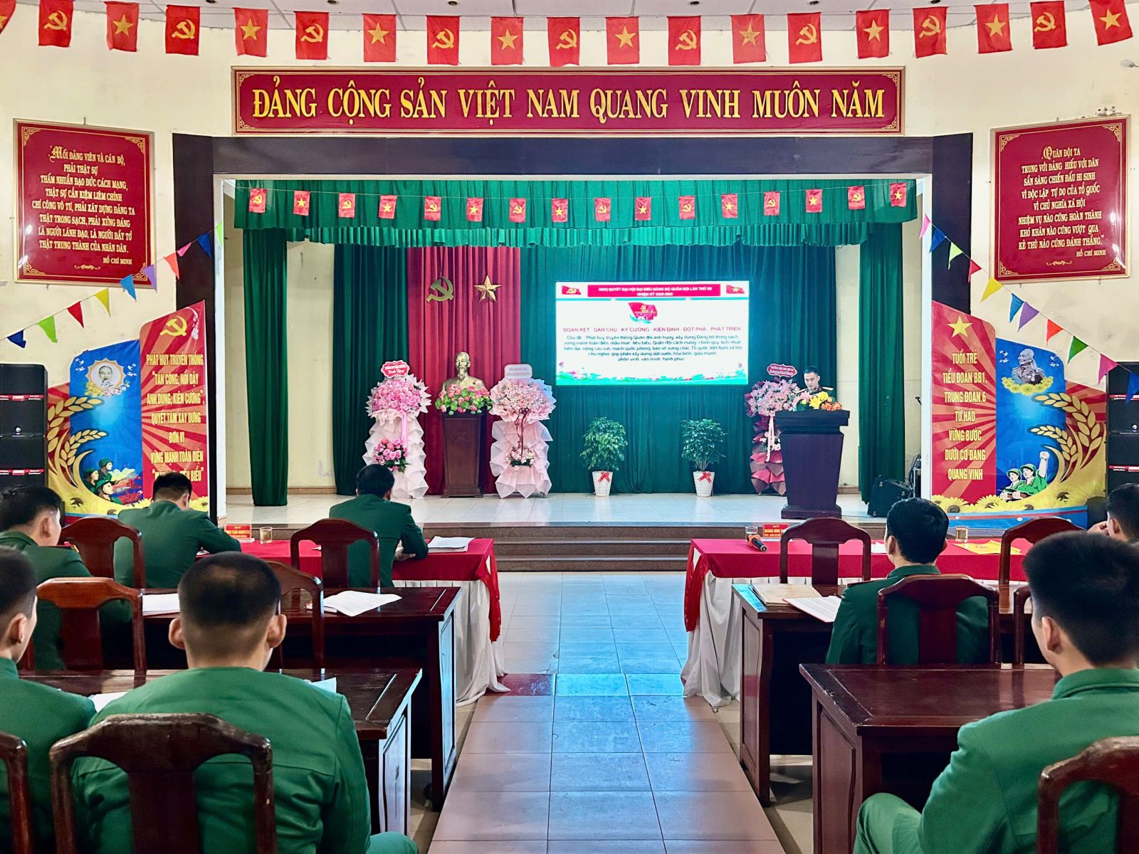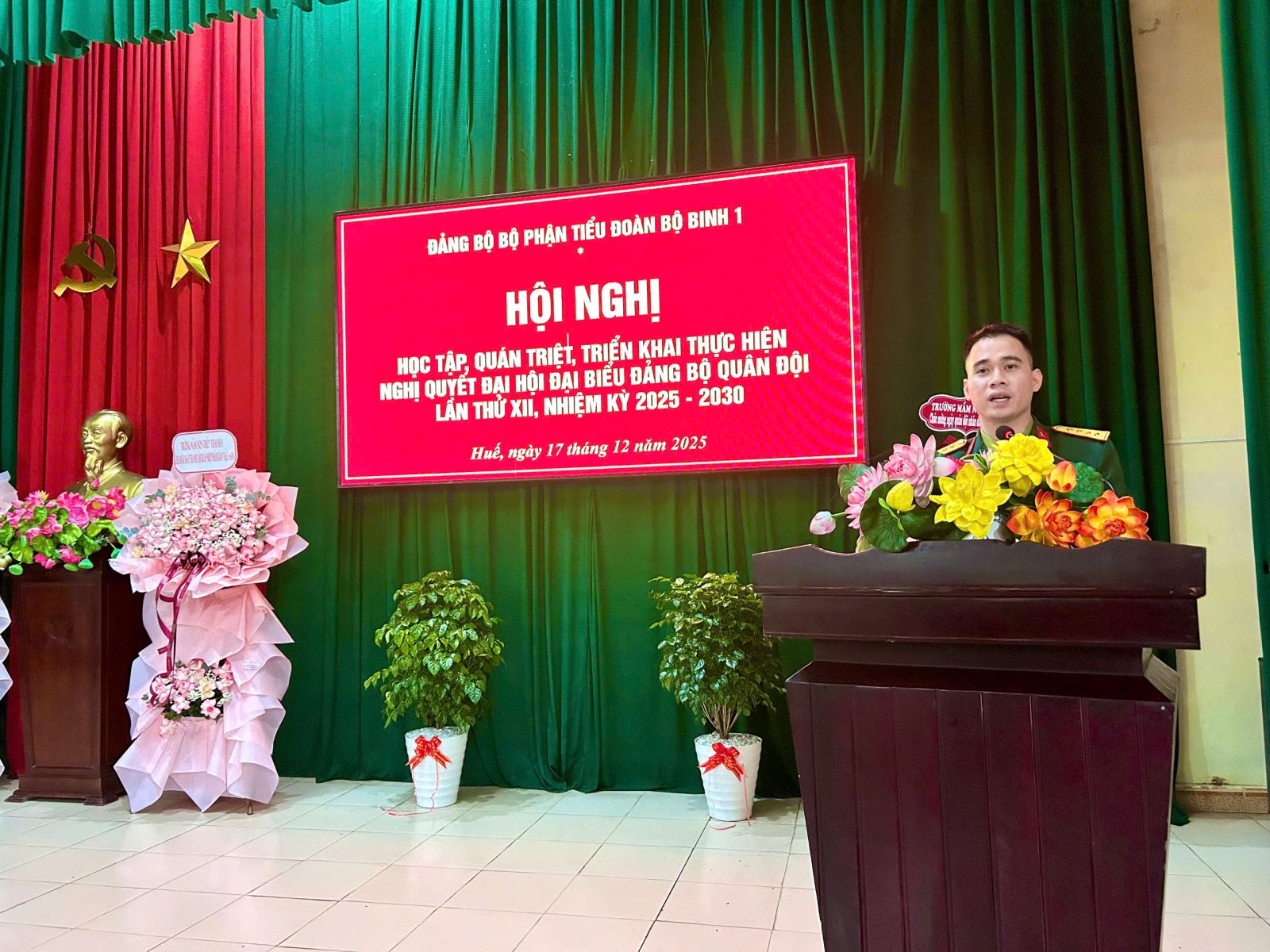 Dịp này, Đảng bộ bộ phận Tiểu đoàn BB1 cũng đã tổ chức học tập, quán triệt và triển khai thực hiện Nghị quyết Đại hội đại biểu Đảng bộ Quân đội lần thứ XII, nhiệm kỳ 2025 - 2030; chương trình hành động thực hiện Nghị quyết Đại hội Đảng bộ Quân khu lần thứ XII, chương trình hành động thực hiện Nghị quyết Đại hội Đảng bộ Quân sự thành phố Huế lần thứ XIII, nhiệm kỳ 2025 - 2030. Theo đó, Đại hội đại biểu Đảng bộ Quân đội diễn ra từ ngày 29/9 đến này 02/10/2025 tại Thủ đô Hà Nội, Đại hội được tiến hành theo phương châm “Đoàn kết - Dân chủ - Kỷ cương - Kiên Định - Đột phá - Phát triển”; Nghị quyết được thông qua tại Đại hội đã xác định rõ phương hướng, mục tiêu, nhiệm vụ và các giải pháp, tạo tiền đề vững chắc để Quân đội hoàn thành xuất sắc mọi nhiệm vụ mà Đảng, Nhà nước và Nhân dân giao phó. Trên cơ sở Nghị quyết Đại hội Đảng bộ Quân khu, ngày 04/11/2025, Đảng ủy Quân khu đã ban hành Chương trình hành động số 75, gồm 14 nhóm nhiệm vụ chủ yếu; 44 chỉ tiêu trên các mặt công tác giai đoạn 2025 - 2030. Ngày 07/8/2025, Đảng ủy Quân sự thành phố Huế đã ban hành Chương trình hành động số 01, gồm 12 nhóm nhiệm vụ chủ yếu trên các mặt công tác giai đoạn 2025 - 2030./.