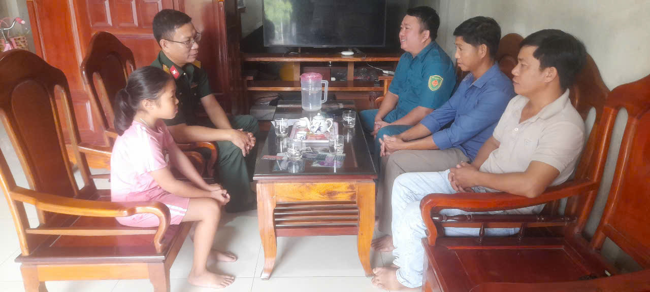 Hưởng ứng chương trình “Nâng bước chân em đến trường”, Trung đoàn 6 - Bộ CHQS thành phố Huế đã nhận đỡ đầu, hỗ trợ hằng tháng cho em Văn Thị Thanh Trúc, sinh năm 2016, học sinh lớp 4, Trường Tiểu học Thanh Toàn, phường Thanh Thủy, thành phố Huế.
