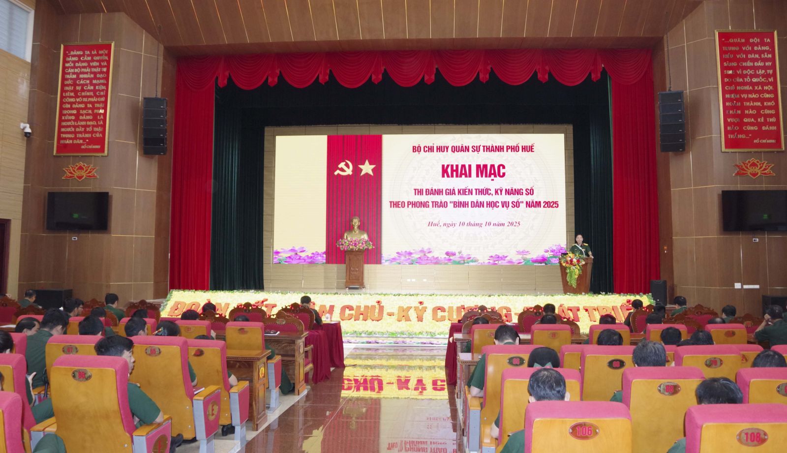 Bộ CHQS thành phố vừa tổ chức thi đánh giá kiến thức, kỹ năng số theo phong trào " Bình dân học vụ số". cho 100% cán bộ sĩ quan, quân nhân chuyên nghiệp cơ quan Bộ chỉ huy và các đơn vị trực thuộc. Thượng tá Hồ Đắc Quốc - Phó Chỉ huy trưởng Bộ CHQS thành phố chủ trì kỳ thi.