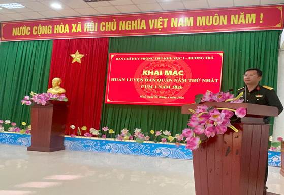 Thực hiện Kế hoạch của Bộ CHQS thành phố Huế về thực hiện công tác Dân quân tự vệ, giáo dục quốc phòng và an ninh, một số công tác quốc phòng địa phương năm 2026, sáng ngày 06/4/2026, Ban Chỉ huy phòng thủ khu vực 1 - Hương Trà tổ chức khai mạc huấn luyện Dân quân năm thứ nhất năm 2026. Thượng tá Nguyễn Văn Thạnh, Phó Bí thư Đảng uỷ, Chỉ huy trưởng Ban Chỉ huy phòng thủ khu vực 1 - Hương Trà dự và chủ trì khai mạc.