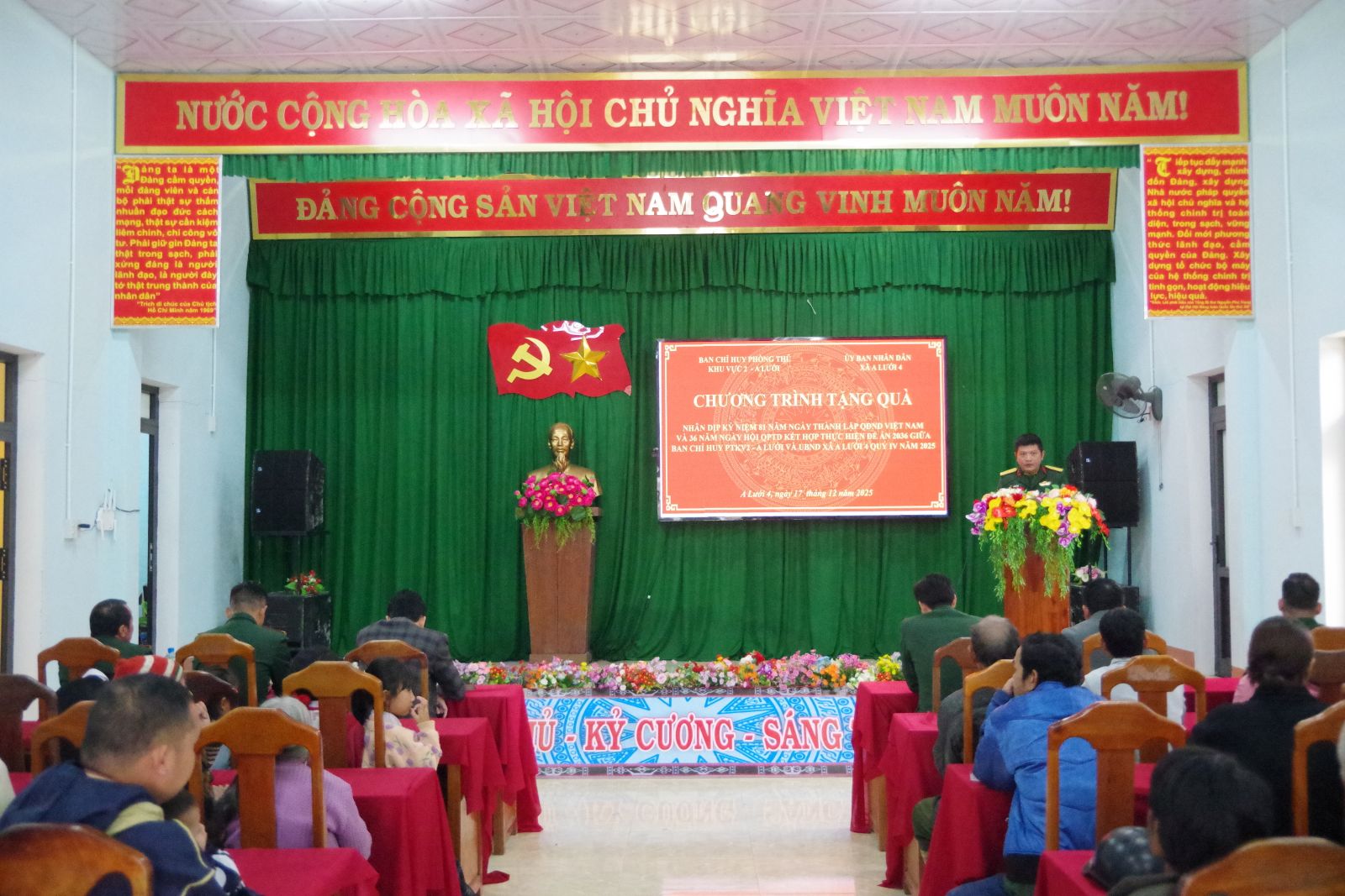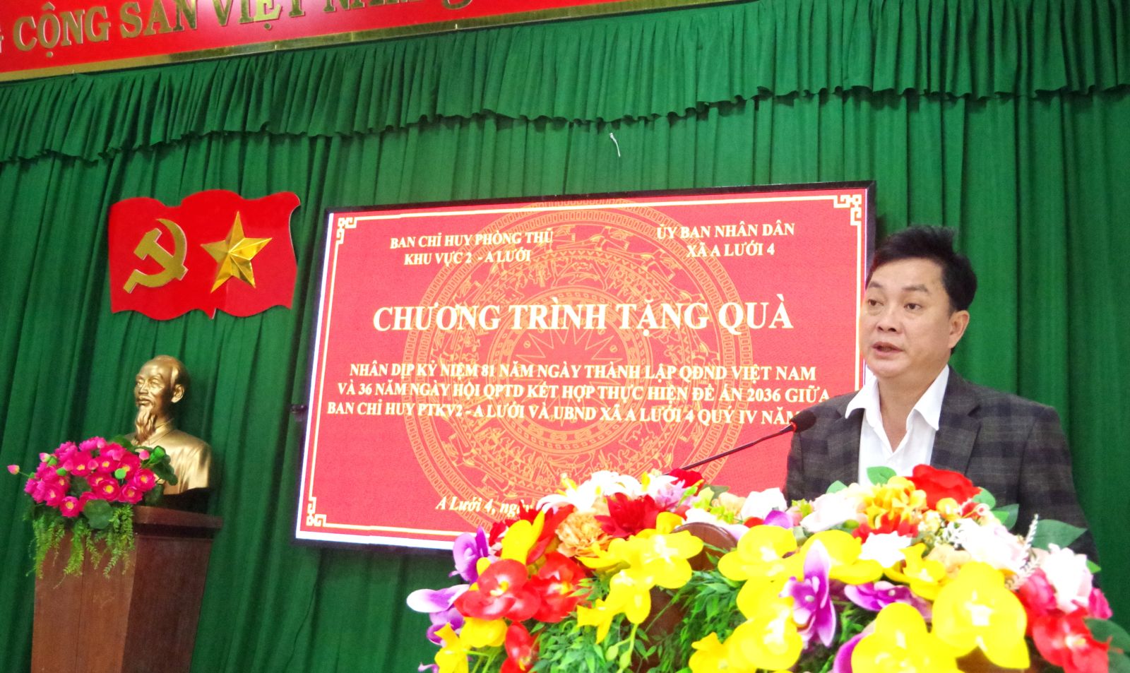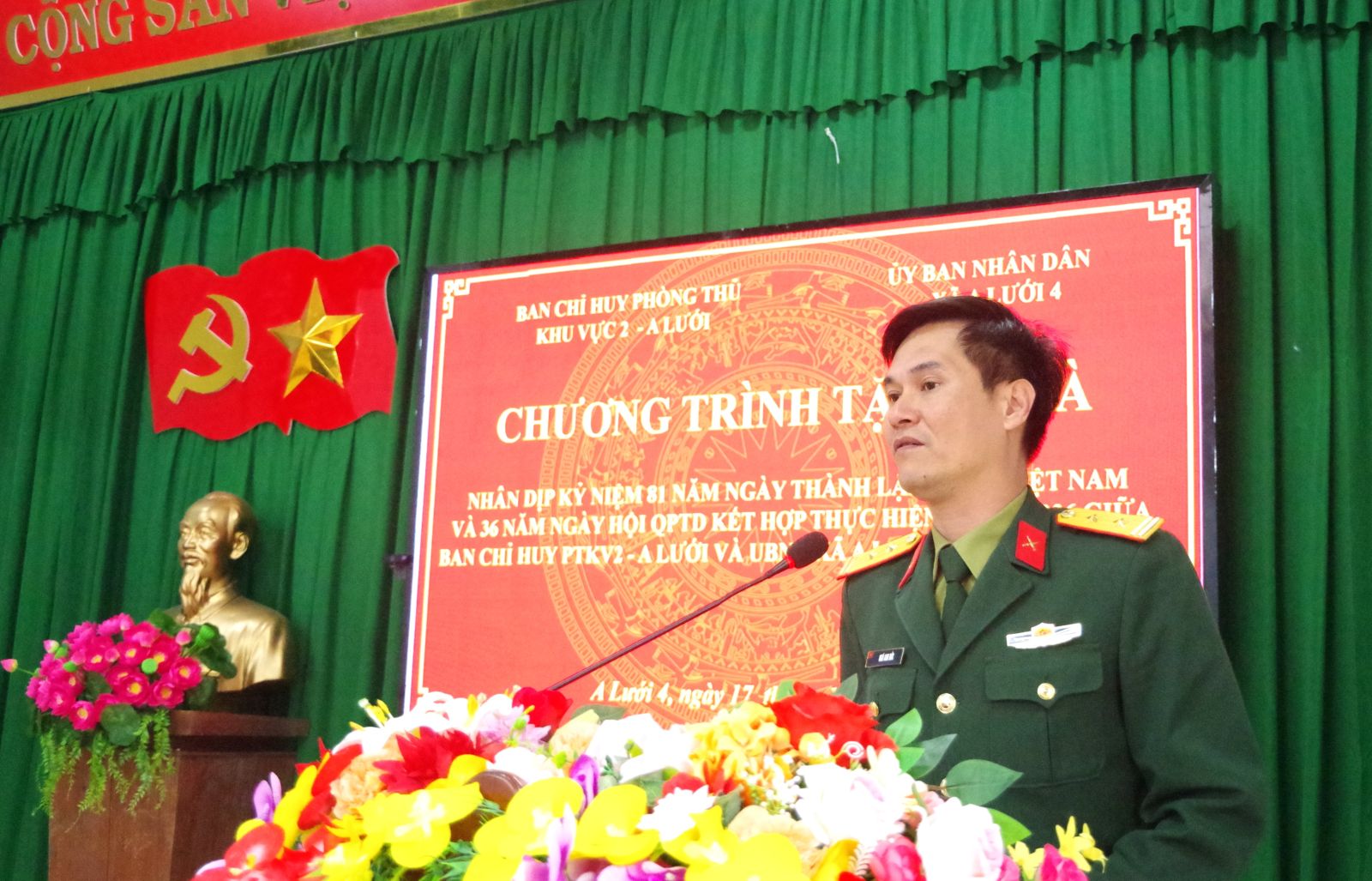 Ban Chỉ huy Phòng thủ Khu vực 2 - A Lưới phối hợp tổ chức Chương trình trao tặng quà nhân dịp kỷ niệm 81 năm Ngày thành lập Quân đội nhân dân Việt Nam và 36 năm Ngày hội Quốc phòng toàn dân.
