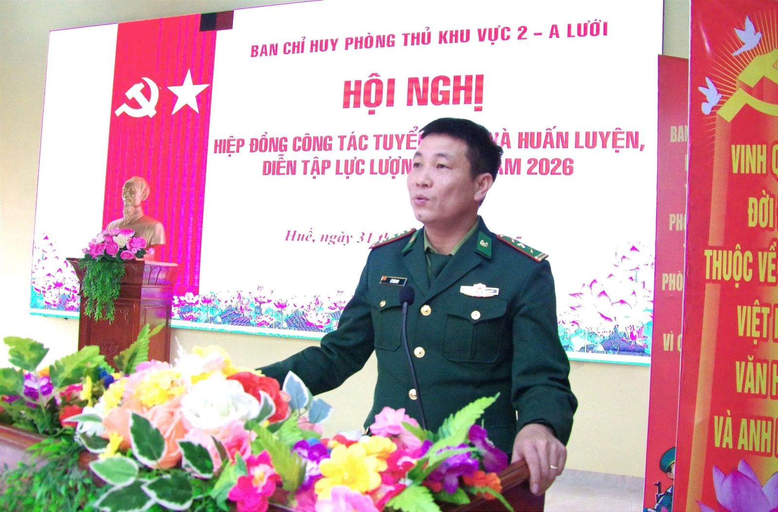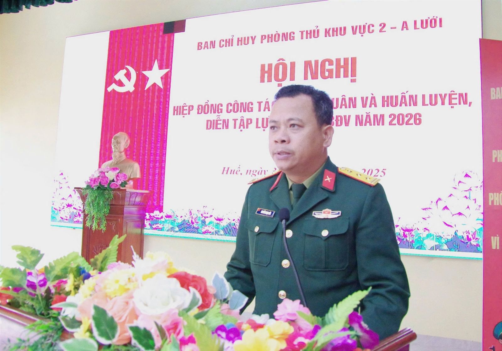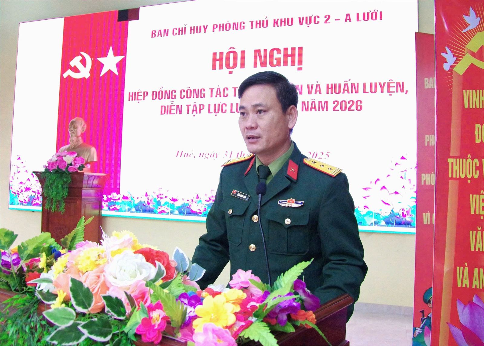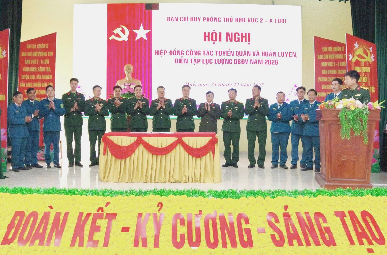 Ngày 31/12, Ban Chỉ huy Phòng thủ Khu vực 2 - A Lưới đã tổ chức Hội nghị hiệp đồng công tác tuyển quân và huấn luyện, diễn tập dự bị động viên (DBĐV) năm 2026. Đồng chí Thượng tá Trần Đình Long, Uỷ viên Ban Thường vụ, Phó Chỉ huy trưởng, Tham mưu trưởng chủ trì hội nghị. Đồng chí Thượng tá Nguyễn Ngọc Đức, Phó Tham mưu trưởng Bộ CHQS thành phố Huế dự và chỉ đạo hội nghị. Tham dự có các đồng chí trong Thường vụ Đảng ủy, Ban Chỉ huy Phòng thủ Khu vực 2 - A Lưới; đại diện lãnh đạo cấp ủy, chính quyền, Ban Chỉ huy Quân sự, Công an các xã, phường trên địa bàn và chỉ huy các đơn vị nhận quân.