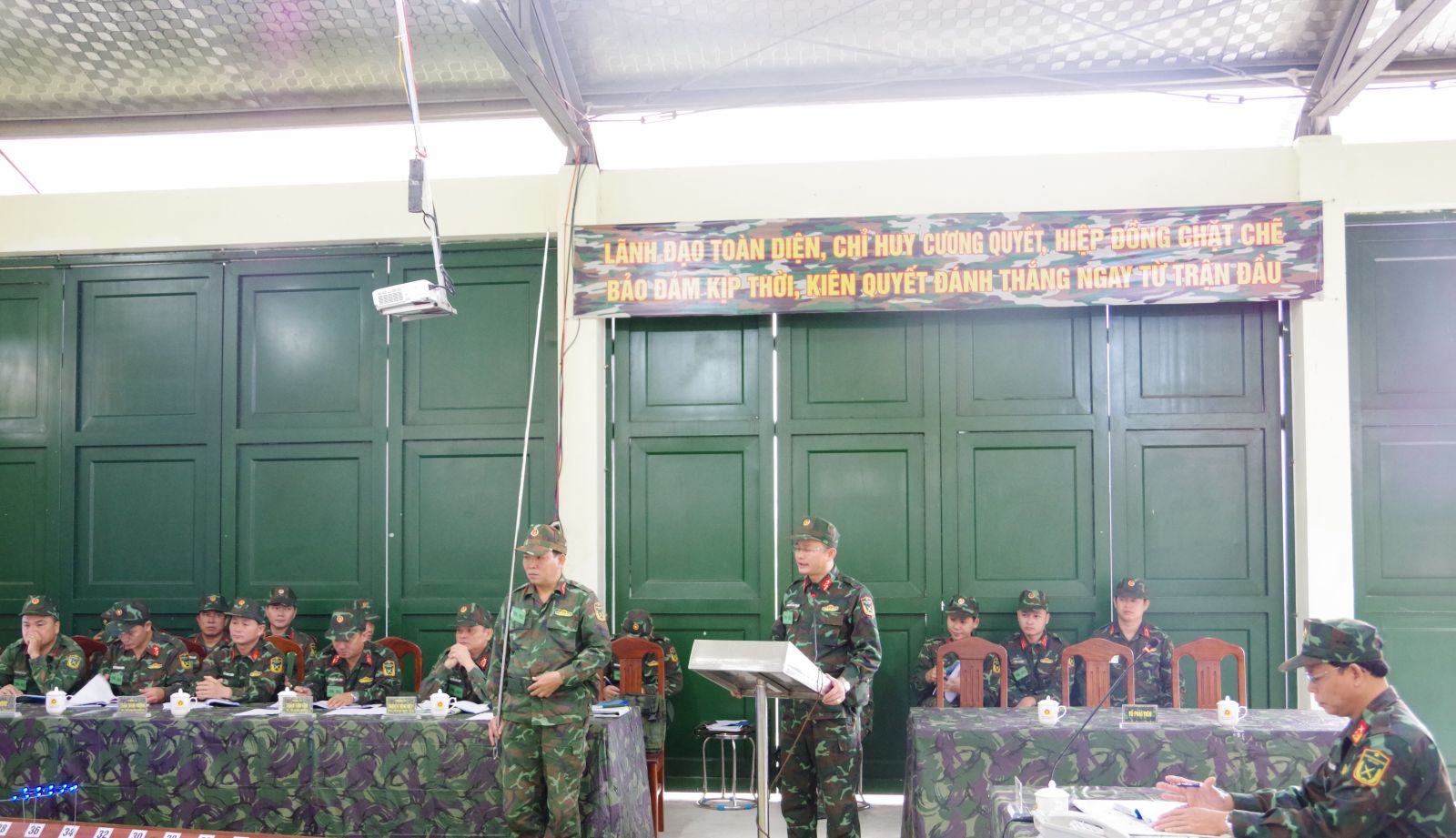 Diễn tập là hoạt động thường xuyên nhằm góp phần nâng cao năng lực lãnh đạo, chỉ huy, điều hành và khả năng tham mưu của cơ quan, đơn vị các cấp trong tổ chức chuyển trạng thái sẵn sàng chiến đấu và thực hành tác chiến phòng thủ; là cơ sở quan trọng để Ban Chỉ huy PTKV 1 – Hương Trà và các cơ quan, đơn vị tiếp tục bổ sung, hoàn chỉnh hệ thống văn kiện sẵn sàng chiến đấu, phương án tác chiến, đáp ứng yêu cầu xây dựng khu vực phòng thủ trong tình hình mới./.