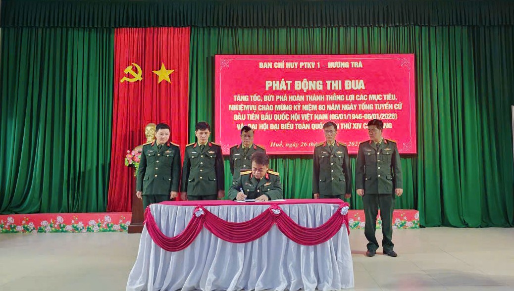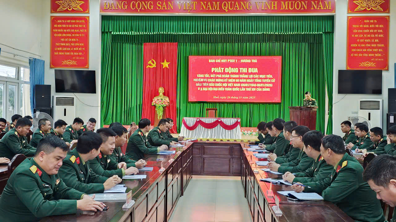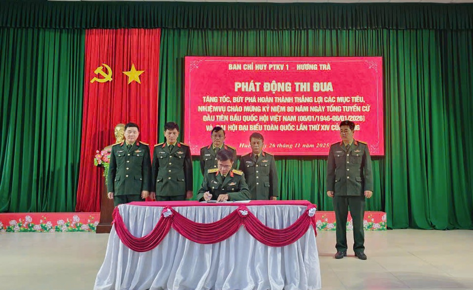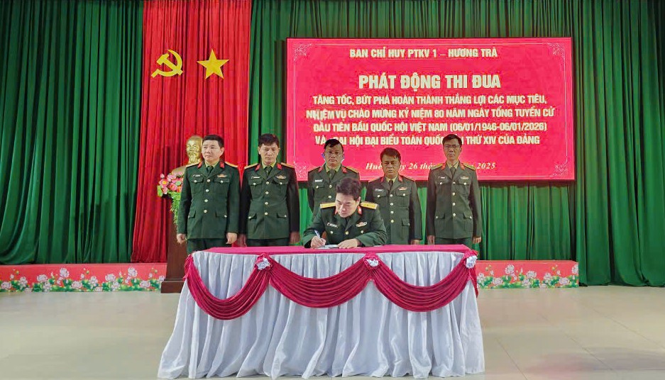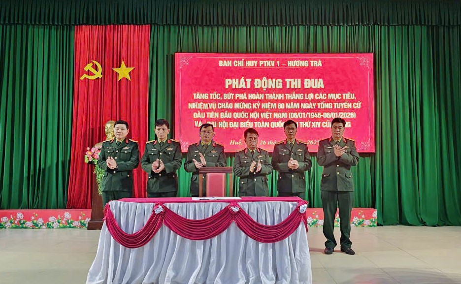 Sáng ngày 26/11/2025, Ban Chỉ huy Phòng thủ Khu vực 1 – Hương Trà tổ chức Hội nghị sơ kết đợt thi đua cao điểm “Phất cao cờ hồng Tháng Tám – Thi đua giành 3 nhất” và phát động đợt thi đua tăng tốc, bứt phá hoàn thành thắng lợi các mục tiêu, nhiệm vụ, chào mừng kỷ niệm 80 năm Ngày Tổng tuyển cử đầu tiên bầu Quốc hội Việt Nam (06/01/1946 – 06/01/2026) và hướng tới Đại hội đại biểu toàn quốc lần thứ XIV của Đảng.