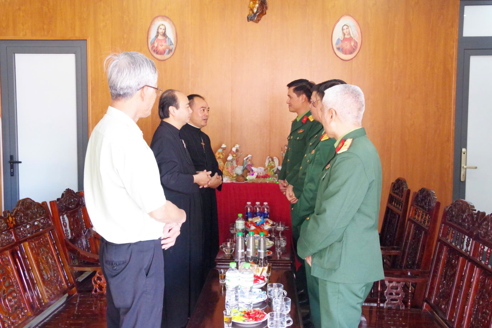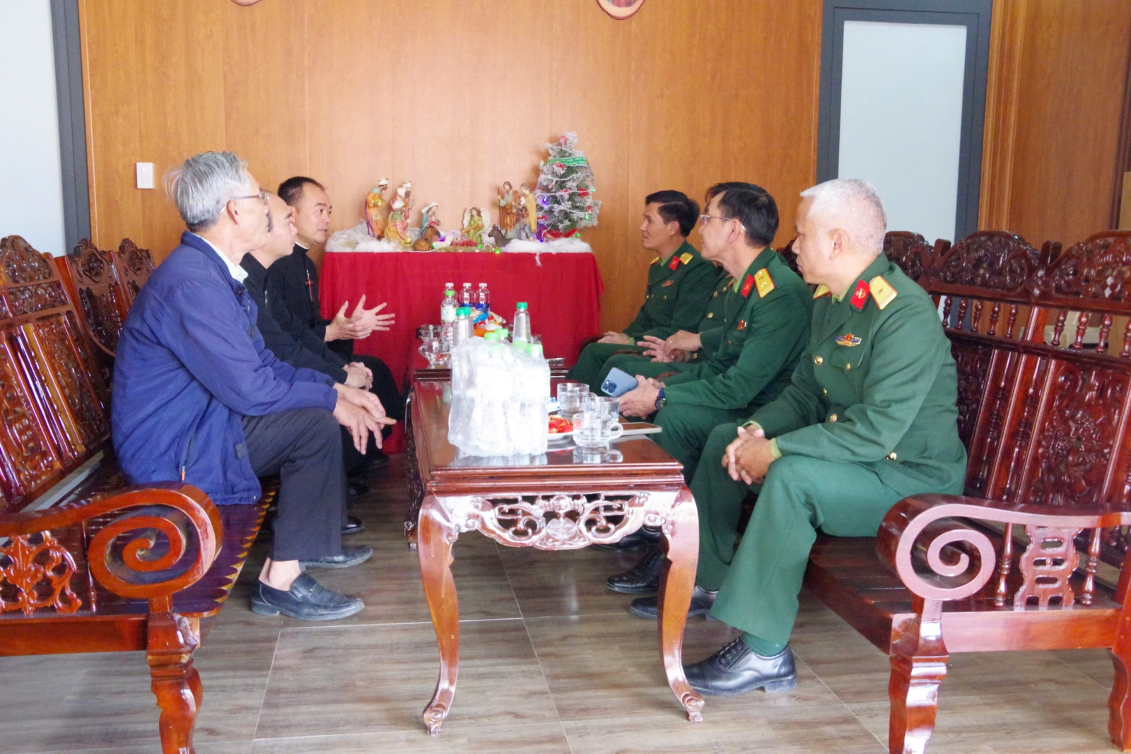 Thay mặt Đảng ủy, Ban Chỉ huy PTKV, đồng chí Trung tá Ngô Anh Đức - Chính ủy Ban Chỉ huy PTKV đã gửi lời chúc mừng Giáng sinh thánh thiện, an lành, hạnh phúc đến Linh mục quản xứ cùng toàn thể bà con giáo dân trên địa bàn; đồng thời trao đổi, ghi nhận những đóng góp tích cực của Giáo xứ trong việc thực hiện tốt chủ trương của Đảng, chính sách, pháp luật của Nhà nước, tích cực tham gia các phong trào của địa phương góp phần giữ gìn an ninh chính trị, trật tự an toàn xã hội và xây dựng khối đại đoàn kết toàn dân tộc trên địa bàn.