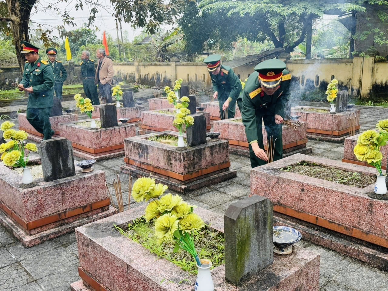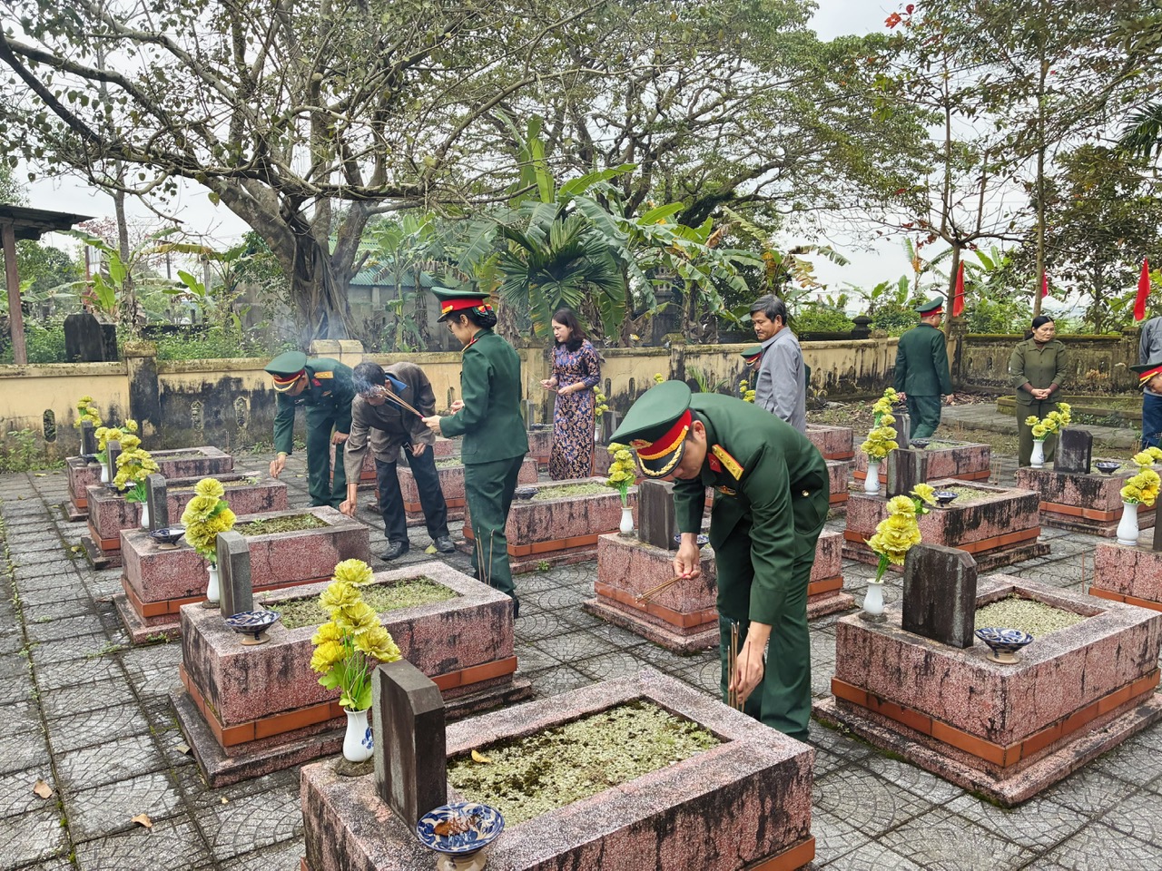 Ngay sau lễ dâng hương, dâng hoa các cán bộ, chiến sĩ Ban Chỉ huy PTKV1-Hương Trà đã đến từng phần mộ để thắp nén hương bày tỏ lòng biết ơn trước sự hy sinh cao cả của các liệt sĩ.