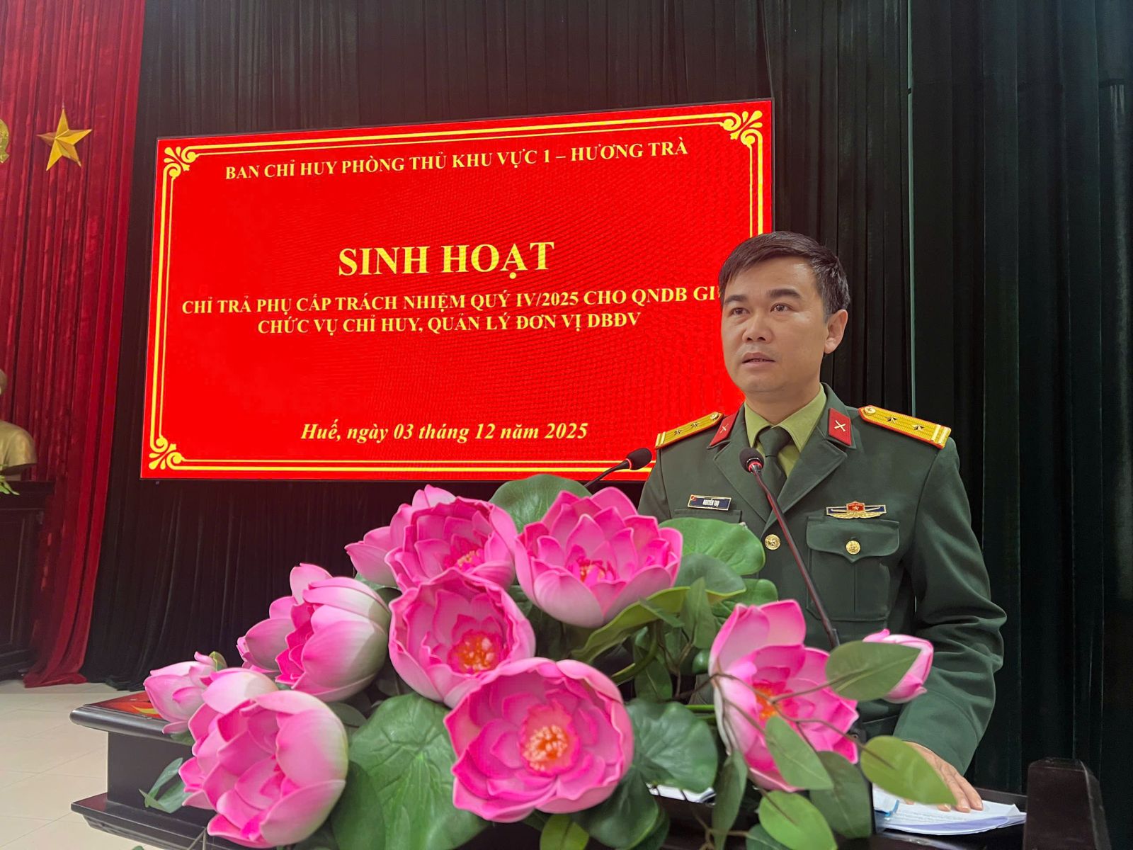 Ban Chỉ huy PTKV1 - Hương Trà tổ chức sinh hoạt và chi trả phụ cấp trách nhiệm quý IV năm 2025 cho đơn vị dự bị động viên