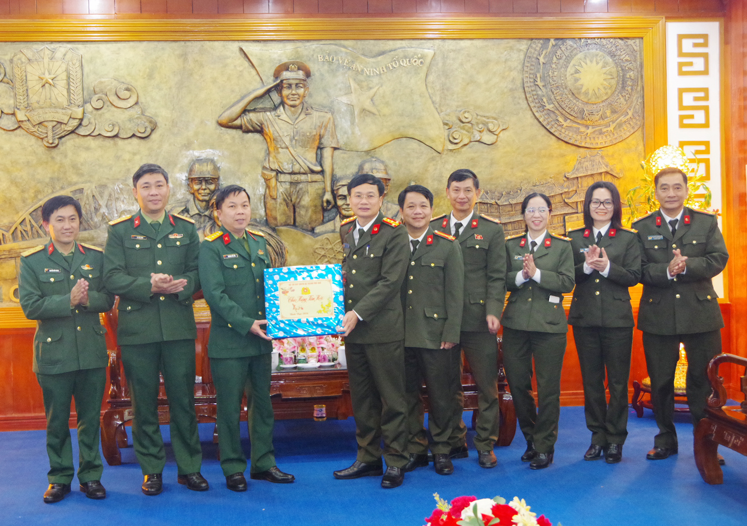 Bộ CHQS thành phố chúc tết cán bộ, chiến sĩ Công an thành phố Huế