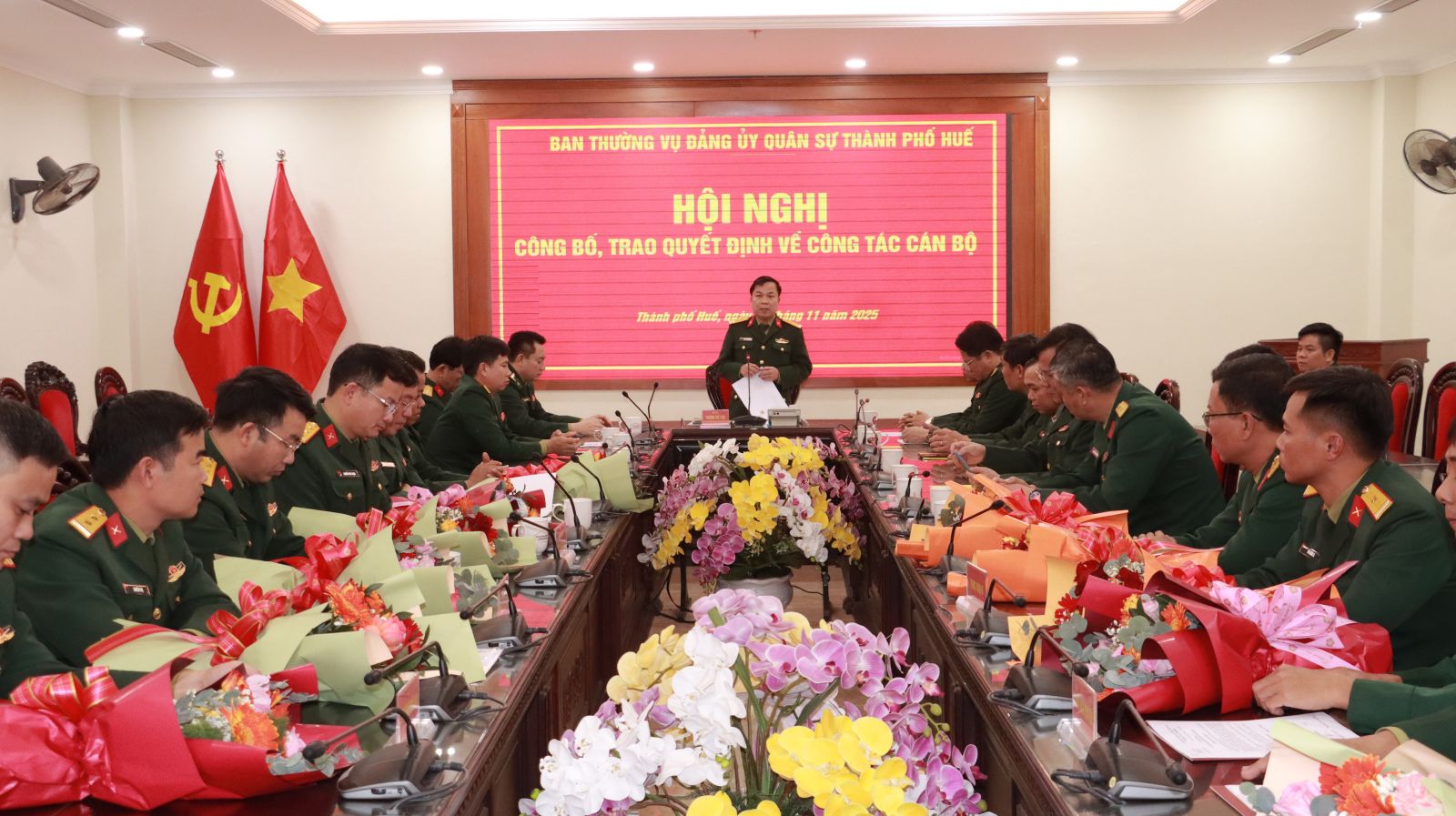 Bộ CHQS thành phố chúc mừng đồng chí Chính ủy và tổ chức Hội nghị công bố, trao quyết định về công tác cán bộ