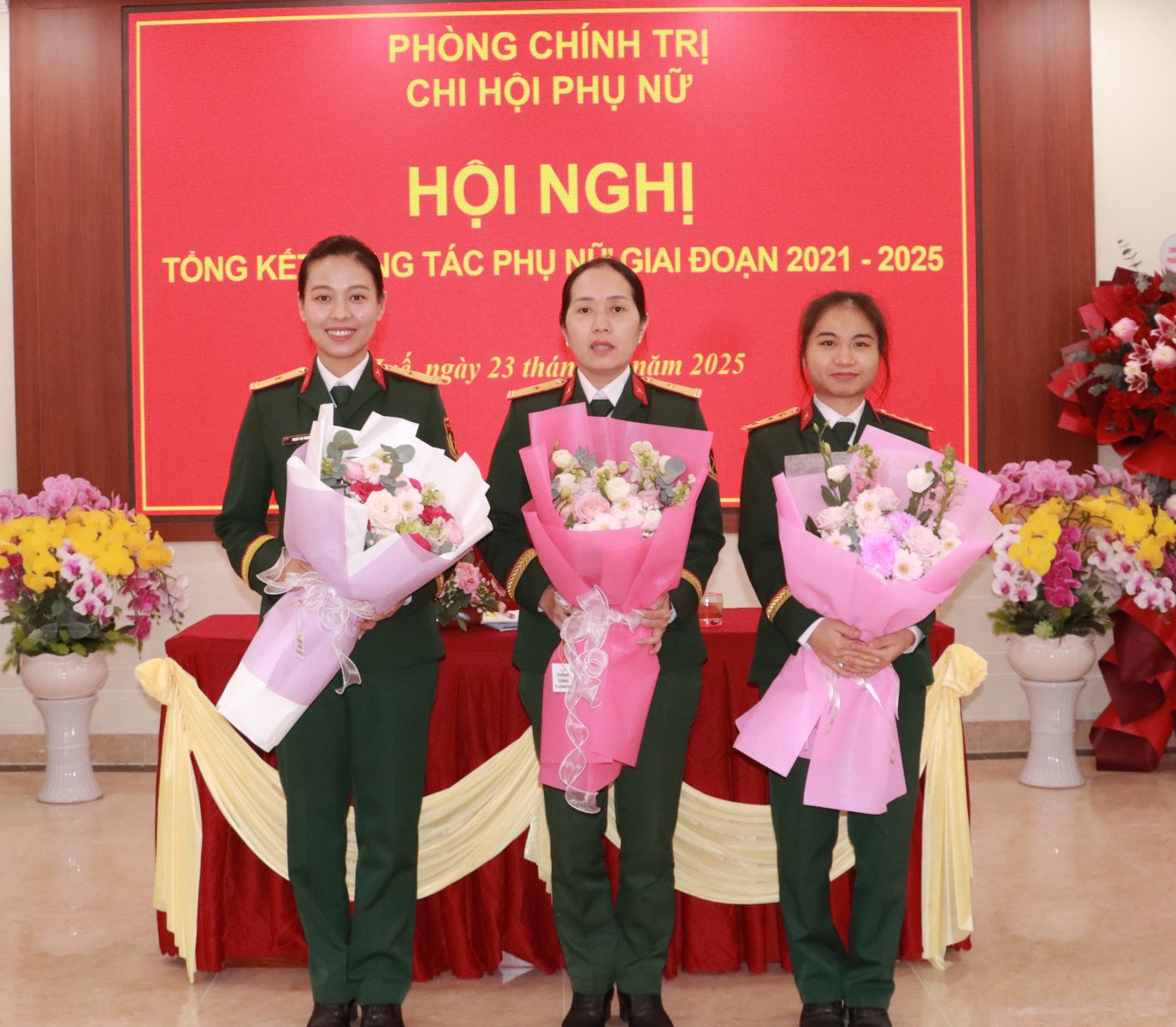 Nhiệm kỳ 2021-2025, Chi hội phụ nữ Phòng Chính trị đã quán triệt sâu sắc và triển khai có hiệu quả phong trào "Phụ nữ quân đội đoàn kết - sáng tạo, hoàn thành tốt nhiệm vụ, xây dựng ia đình hạnh phúc, xứng danh Bộ đội Cụ Hồ", gắn với thực hiện Chỉ thị 05 về học tập và làm theo tư tưởng, đạo đức, phong cách Hồ Chí Minh; thường xuyên tuyên truyền, giáo dục phẩm chất đạo đức tốt đẹp của người phụ nữ Việt Nam trong cán bộ, hội viên phụ nữ Quân đội, vận động cán bộ, hội viên rèn luyện phấn đấu theo tiêu chí “tự tin, tự trọng, trung hậu đảm đang”; xây dựng hình ảnh người phụ nữ Quân đội theo tiêu chí Bốn tốt “sức khỏe tốt, phẩm chất tốt, chuyên môn tốt, xây dựng gia đình tốt”, đồng thời trang bị cho cán bộ, hội viên về xây dựng tổ chức cuộc sống gia đình, nuôi dạy con cái, kiến thức về giới tính, chăm sóc sức khỏe sinh sản và chuyên đề “ nâng cao nhận thức về bình đẳng giới...