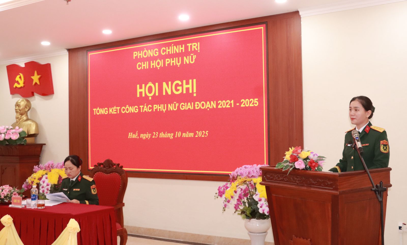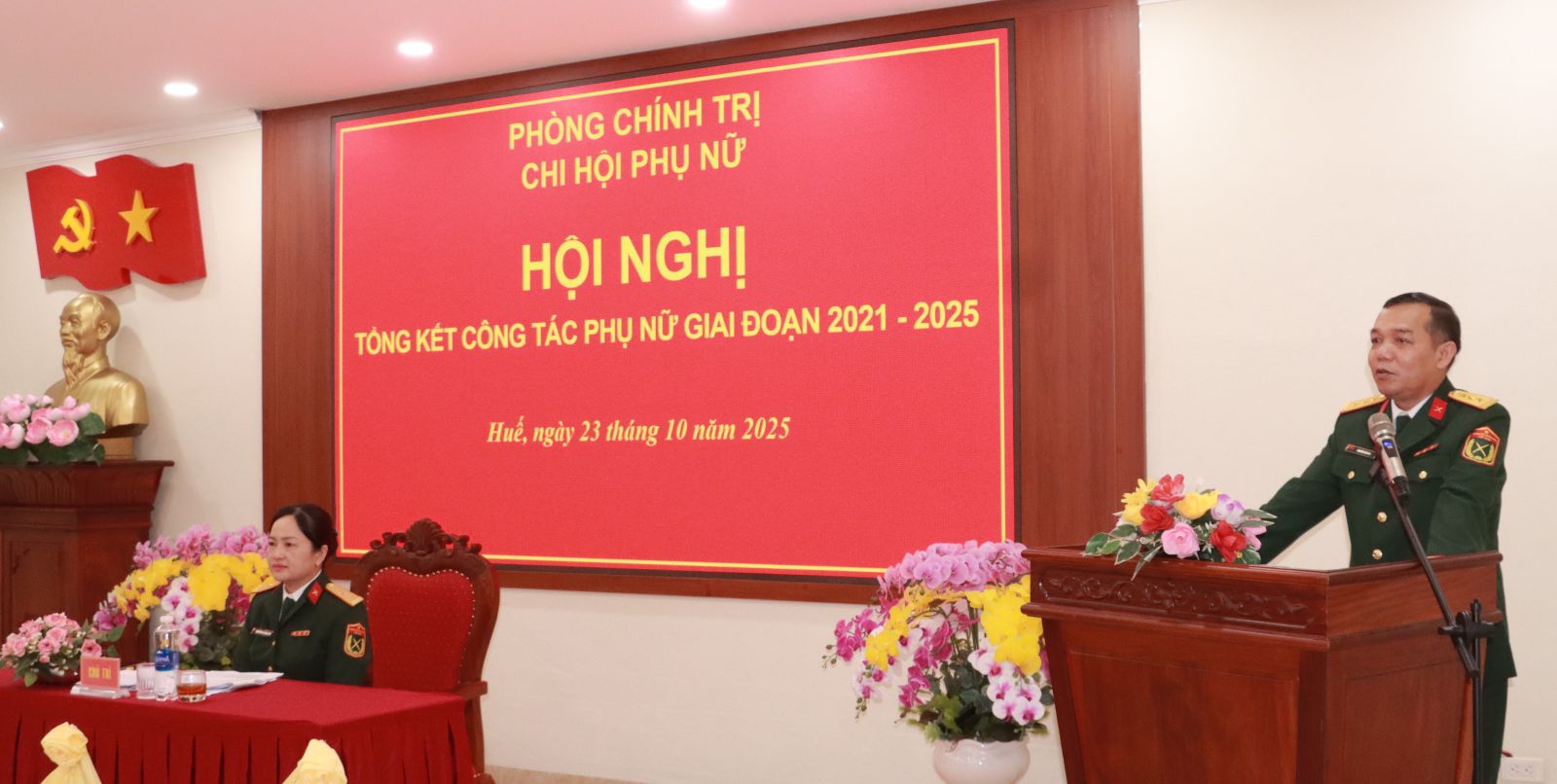 Sáng ngày 23/10, Chi hội Phụ nữ Phòng Chính trị tổ chức Hội nghị đánh giá kết quả thực hiện Nghị quyết Đại hội Hội phụ nữ cơ sở nhiệm kỳ 2021 - 2025, phươnghướng, nhiệm vụ nhiệm kỳ 2025 - 2030. Thượng tá Nguyễn Văn Piu, Bí thư Đảng ủy Phòng Chính trị, Phó Chủ nhiệm Chính trị Bộ CHQS thành phố dự chỉ đạo Hội nghị.