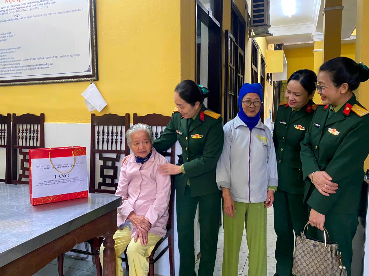 Chi hội Phụ nữ Phòng Chính trị tặng quà cho các cụ đang được nuôi dưỡng tại Trung tâm điều dưỡng, chăm sóc người có công Huế