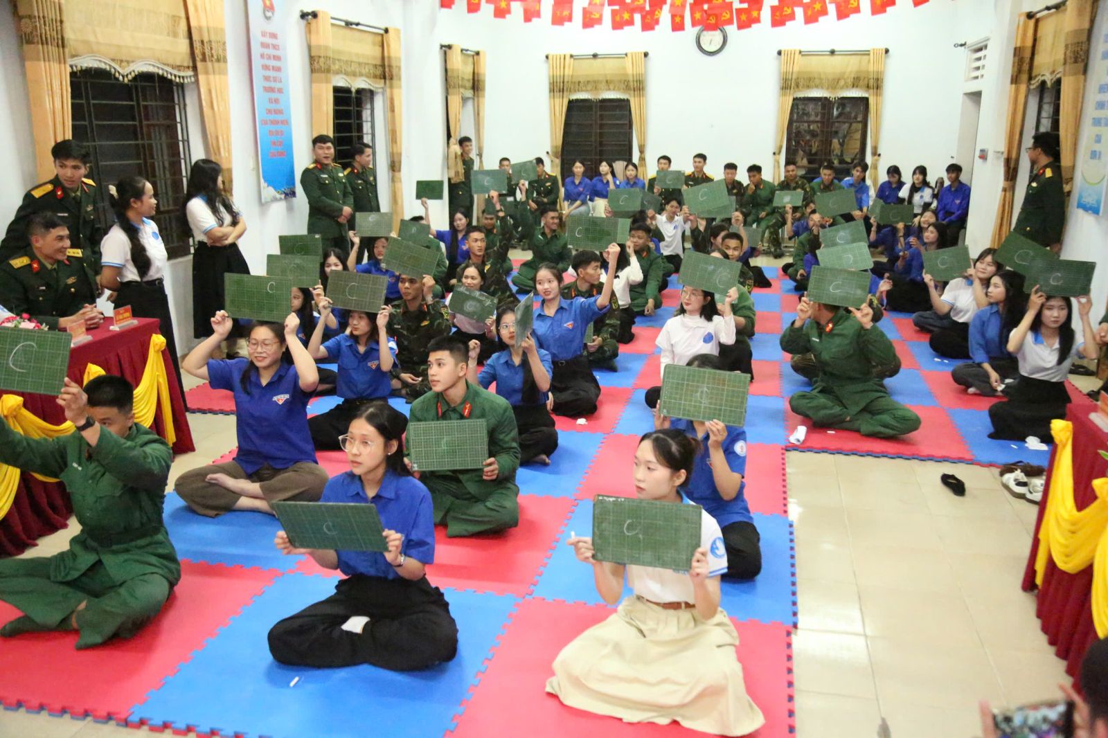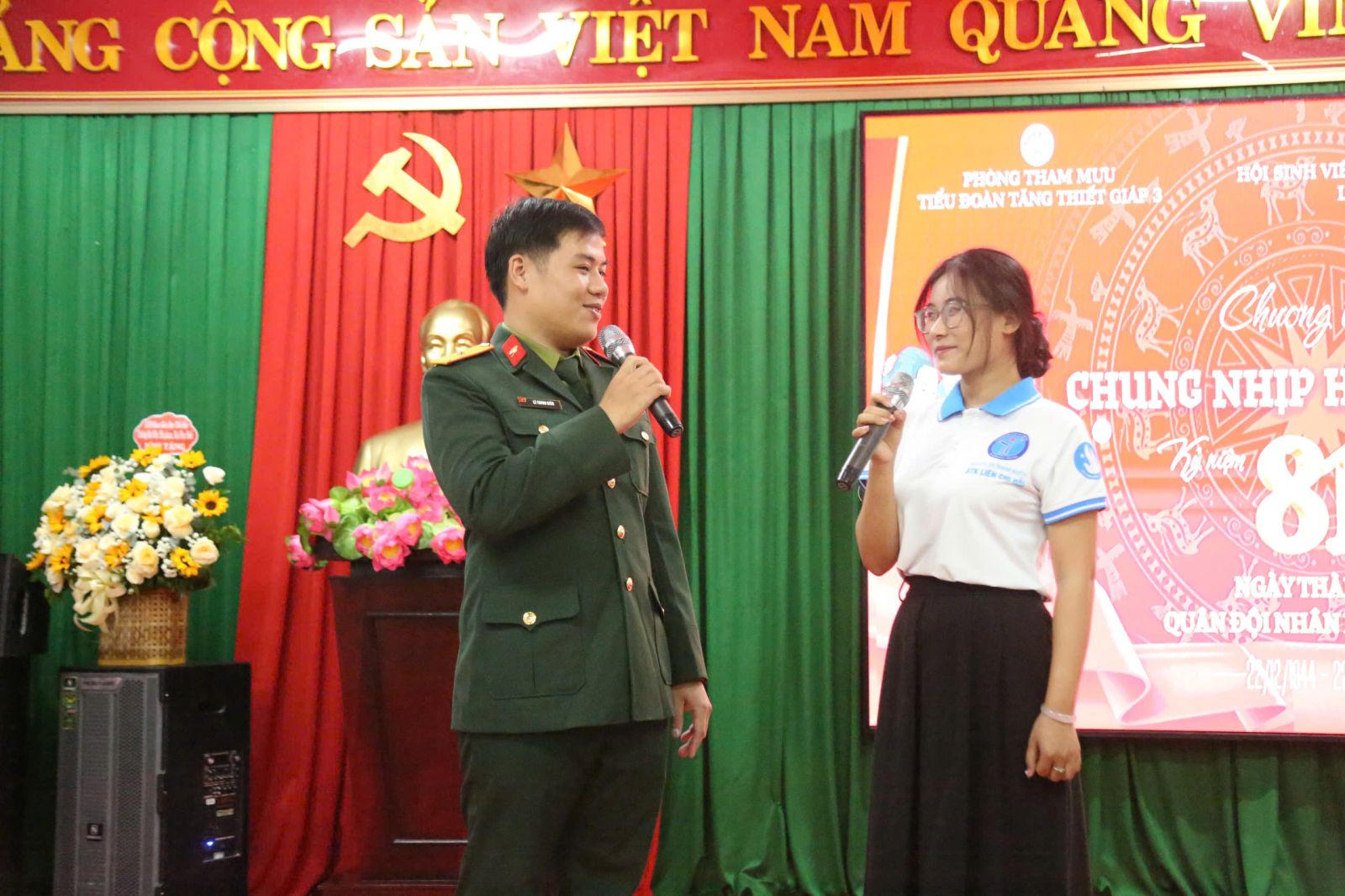 Cán bộ, chiến sĩ và các bạn sinh viên giao lưu văn hóa, văn nghệ