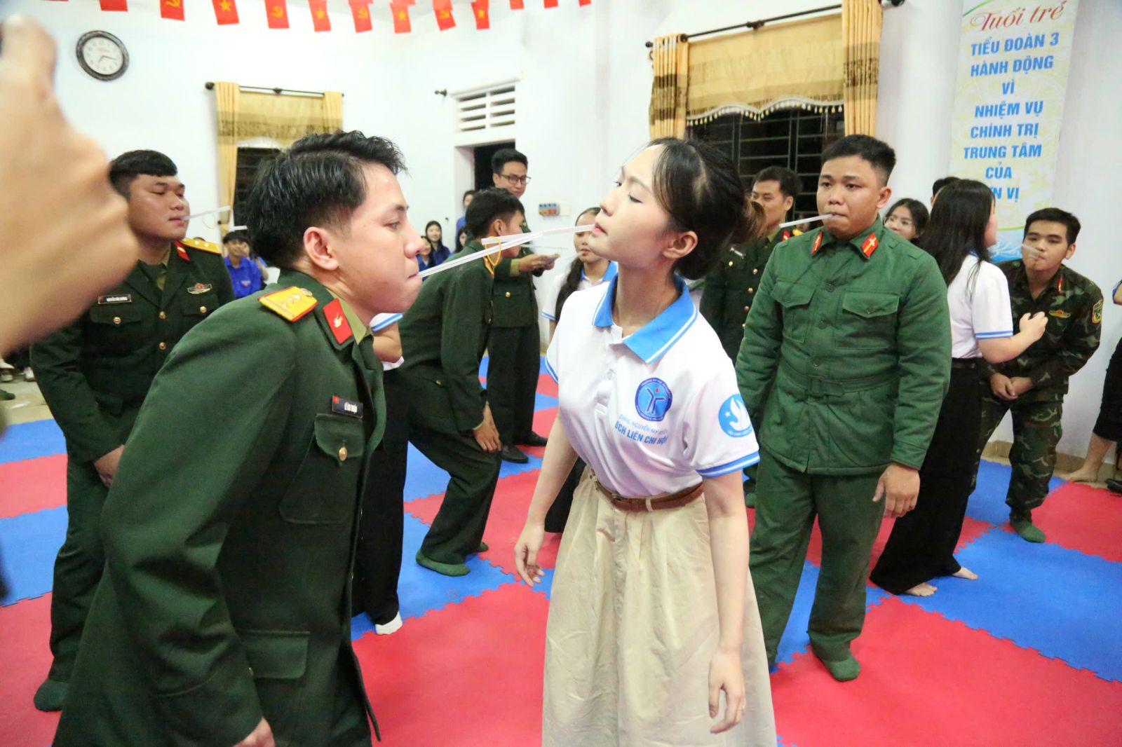 Cán bộ, chiến sĩ và các bạn sinh viên giao lưu tham gia các trò chơi