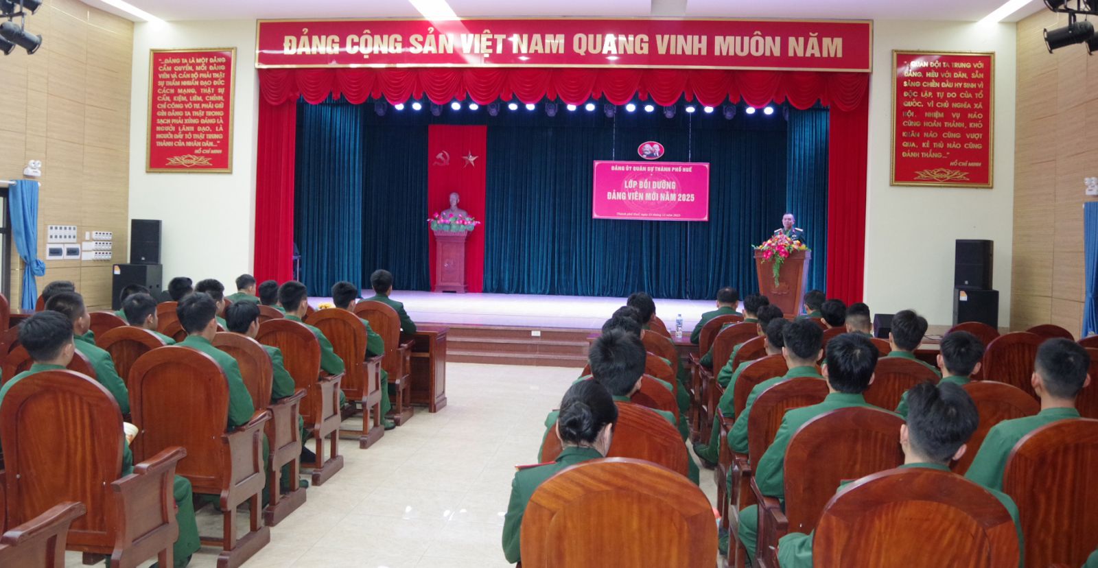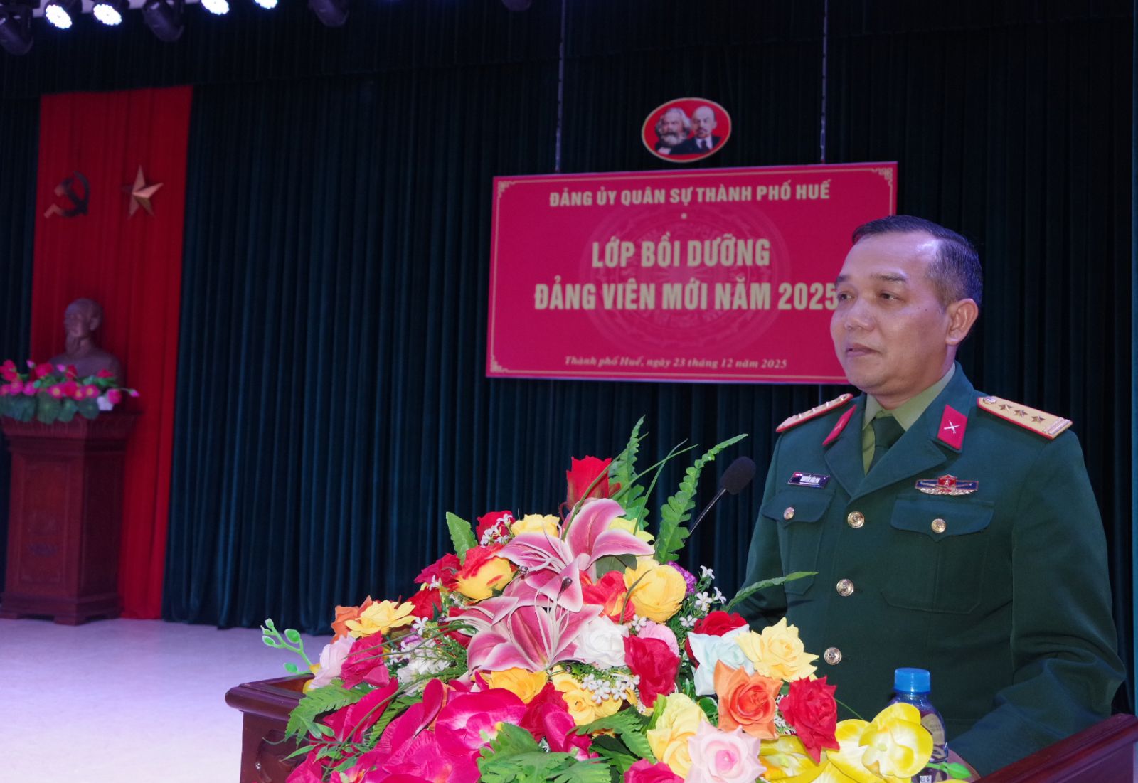 Chiều ngày 25/12, Đảng ủy quân sự thành phố Huế đã tổ chức bế mạc và trao giấy chứng nhận cho 32 đồng chí đảng viên thuộc các Đảng bộ trực thuộc đã hoàn thành lớp bồi dưỡng Đảng viên mới năm 2025. Thượng tá Nguyễn Văn Piu – Phó chủ nhiệm chính trị Bộ CHQS thành phố phát biểu chỉ đạo tại buổi bế mạc