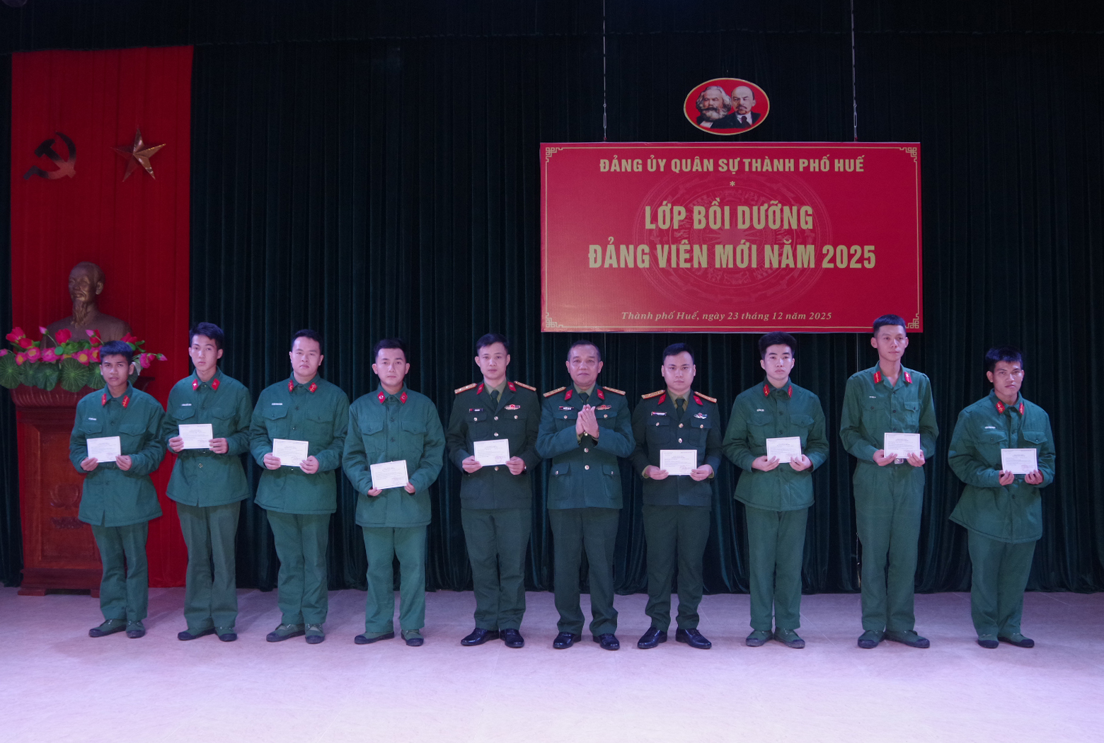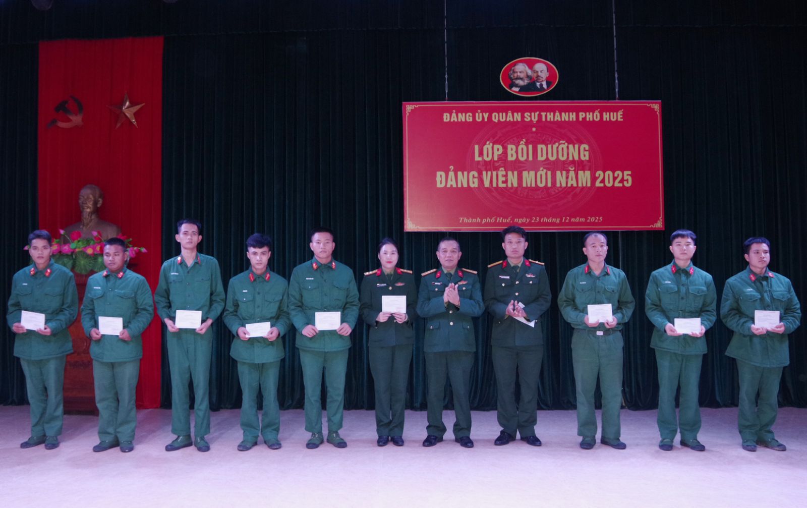 Đảng ủy quân sự Thành phố huế trao giấy chứng nhận cho 32 đồng chí hoàn thành lớp bồi dưỡng đảng viên mới năm năm 2025