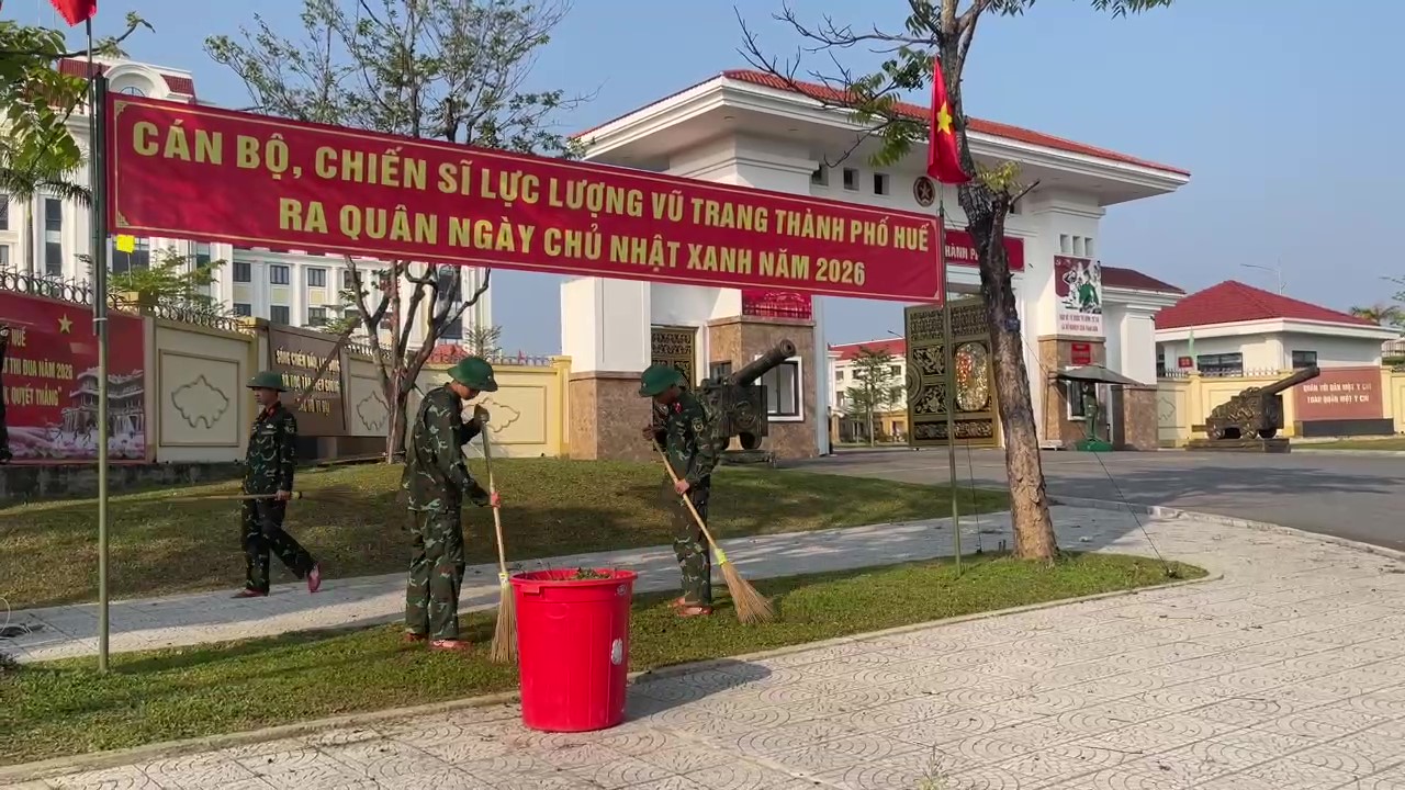 Nhằm hưởng ứng “Tháng Thanh niên năm 2026” và chào mừng kỷ niệm 95 năm Ngày thành lập Đoàn Thanh niên Cộng sản Hồ Chí Minh (26/3/1931 - 26/3/2026), 51 năm Ngày giải phóng quê hương thành phố Huế (26/3/1975 - 26/3/2026), sáng 22/3, Đoàn Thanh niên Bộ Chỉ huy Quân sự (CHQS) thành phố tổ chức ra quân “Ngày Chủ nhật xanh” năm 2026.