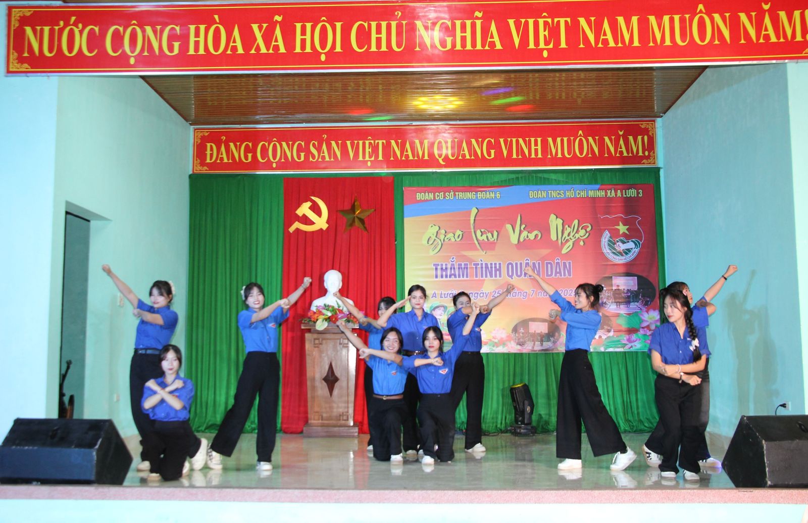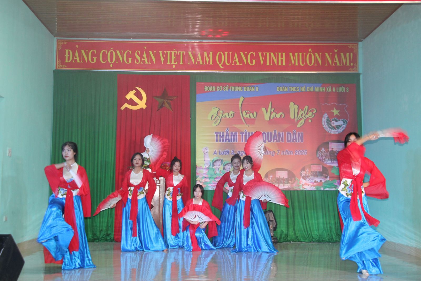 Thực hiện nhiệm vụ hành quân dã ngoại làm công tác dân vận tại xã A Lưới 3, thành phố Huế. Tối ngày 25/7, trên 400 cán bộ, chiến sĩ, đoàn viên, thanh niên Trung đoàn 6, Bộ Chỉ huy quân sự thành phố Huế; Đoàn cơ sở xã A Lưới 3; Ban Chỉ huy phòng thủ khu vực 2 tổ chức đêm giao lưu văn hóa, văn nghệ với chủ đề “Thắm tình quân dân”.