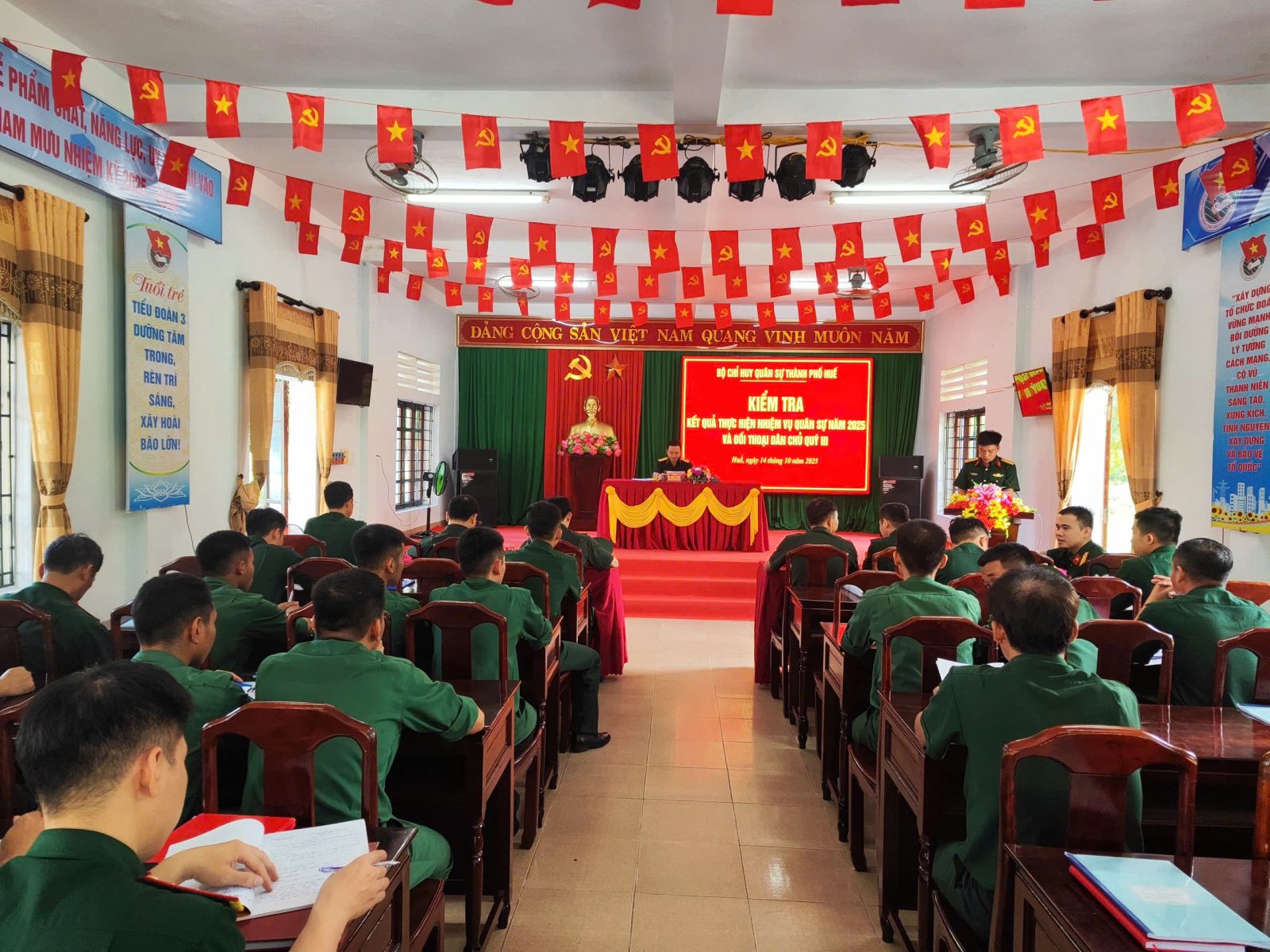 Đoàn kiểm tra Bộ CHQS thành phố đã tiến hành kiểm tra toàn diện các mặt công tác quân sự, chính trị, hậu cần - kỹ thuật; trong đó tập trung vào việc quán triệt các Nghị quyết, chỉ thị, mệnh lệnh các cấp về nhiệm vụ quân sự; kiểm tra hệ thống văn kiện sẵn sàng chiến đấu (SSCĐ); kế hoạch, sổ sách hoạt động công tác đảng, công tác chính trị, đăng ký thống kê kết quả huấn luyện; công tác xây dựng chính quy, hệ thống kho tàng, tình trạng phương tiện xe máy, công tác tăng gia sản xuất, chăn nuôi.