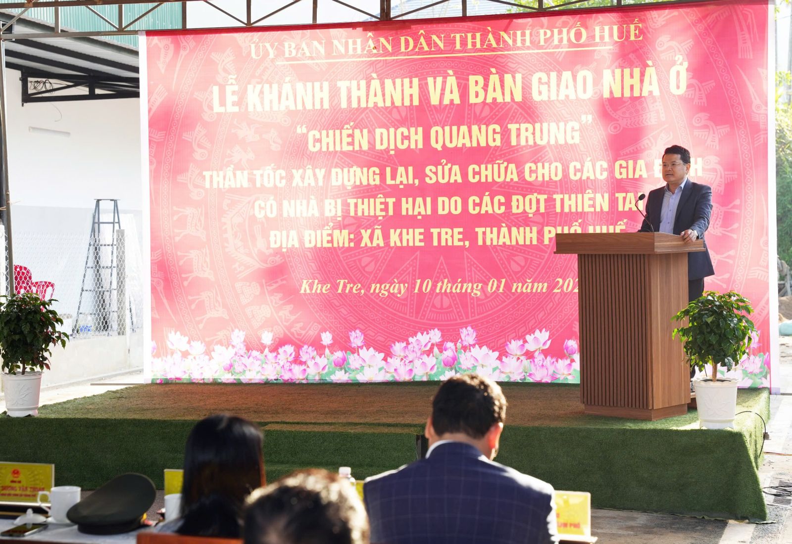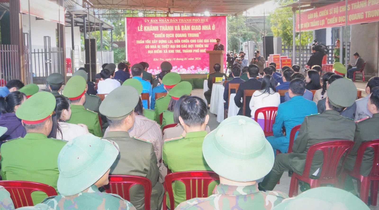 Sáng 10/1/2025, Uỷ ban nhân dân (UBND) thành phố Huế tổ chức Lễ khánh thành và bàn giao nhà ở “Chiến dịch Quang Trung” thần tốc xây dựng lại, sửa chữa cho các gia đình có nhà bị thiệt hại do các đợt thiên tai tại xã Khe Tre, thành phố Huế. Tham dự buổi lễ có đồng chí Hoàng Hải Minh, UVTV Thành ủy, Phó Chủ tịch UBND thành phố Huế; Đại tá Hà Văn Ái, UVTV Đảng ủy Quân sự, Phó Chính ủy Bộ Chỉ huy Quân sự (CHQS) thành phố Huế; lãnh đạo các ban, sở, ngành thành phố, Công an thành phố và xã Khe Tre.
