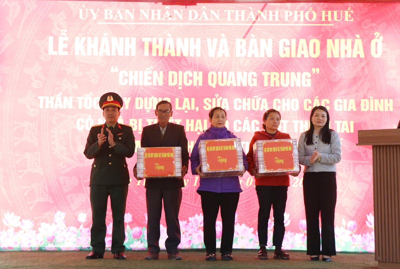 Tại buổi lễ, UBND thành phố Huế đã tổ chức khánh thành và bàn giao 3 ngôi nhà xây mới cho 3 gia đình tại xã Khe Tre gồm gia đình bà Nguyễn Thị Hiệp, ông Nguyễn Viết Lượng và ông Trần Văn Viến, đây là những gia đình bị sạt lở nghiêm trọng trong đợt mưa lũ vừa qua ở xã Khe Tre. Đây cũng là những căn nhà cuối cùng, chính thức khép lại “Chiến dịch Quang Trung” thần tốc trên địa bàn thành phố Huế.