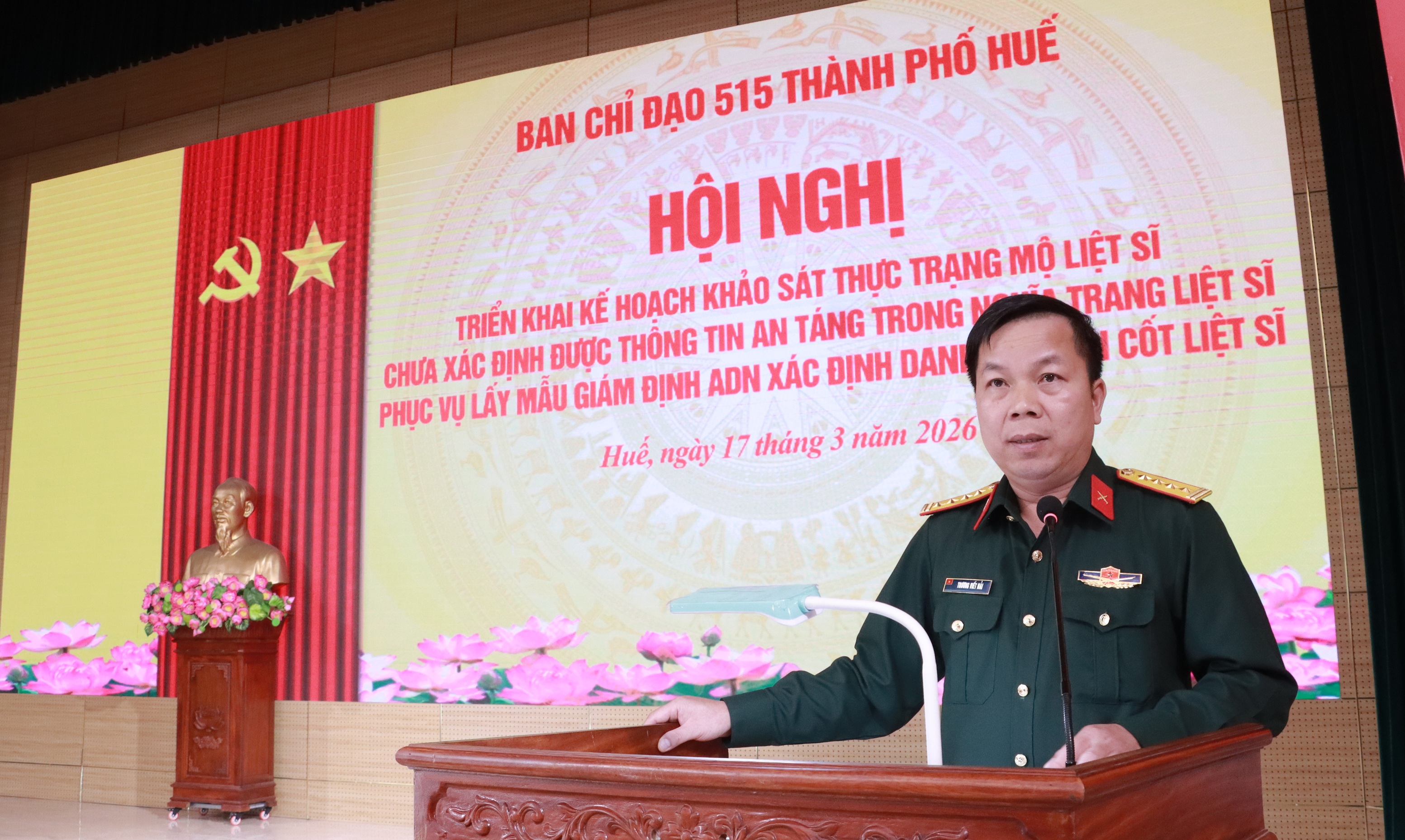 Phát biểu chỉ đạo, Đại tá Trương Viết Hải, Chính ủy Bộ CHQS thành phố, Phó Trưởng ban Thường trực Ban Chỉ đạo 515 thành phố nhấn mạnh, công tác khảo sát thực trạng mộ liệt sĩ phục vụ lấy mẫu giám định ADN xác định danh tính HCLS còn thiếu thông tin là nhiệm chính trị quan trọng, thể hiện đạo lý “Uống nước nhớ nguồn”, sớm đưa các anh hùng liệt sĩ trở về với tên tuổi của mình, đáp ứng nguyện vọng của thân nhân gia đình liệt sĩ và dân tộc; tuy nhiên đây là việc khó, yêu cầu cao, cần cụ thể và chính xác.