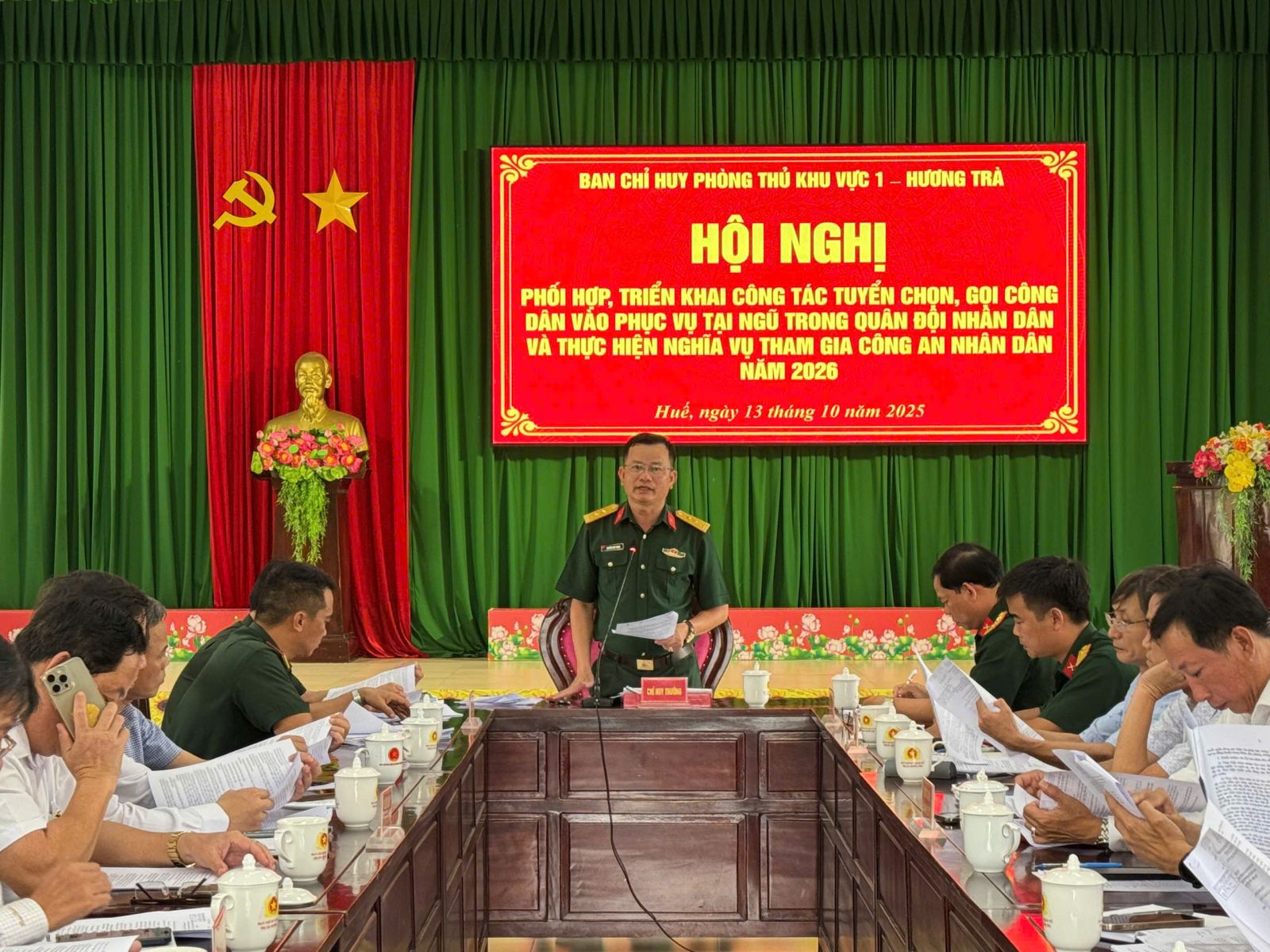 Ban Chỉ huy phòng thủ khu vực 1 – Hương Trà tổ chức Hội nghị phối hợp triển khai công tác tuyển chọn và gọi công dân nhập ngũ năm 2026