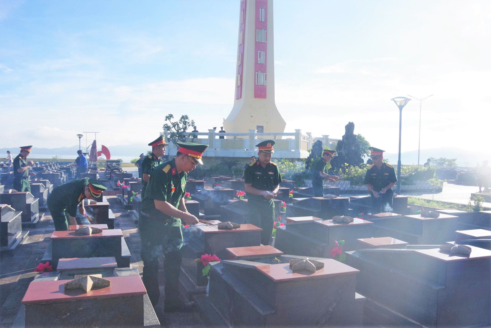 Cán bộ, nhân viên Ban Chỉ huy PTKV dâng hương tại các phần mộ anh hùng liệt sĩ