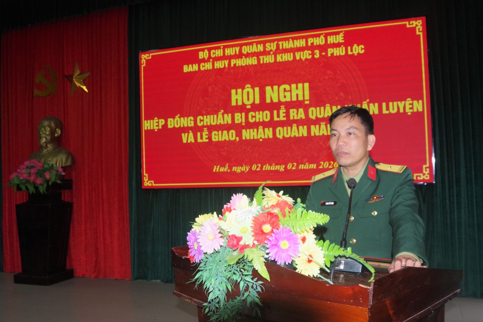 Chiều ngày 02/2, Ban Chỉ huy Phòng thủ khu vưc 3 - Phú Lộc tổ chức hội nghị hiệp đồng lễ ra quân huấn luyện và giao, nhân quân năm 2026. Thượng tá Lê Đức - Chỉ huy trưởng chủ trì hội nghị. Tham dự hội nghị còn có Thượng tá Đào Ngọc Thành - ĐUV ĐUQS TP, Bí thư Đảng uỷ, Chính uỷ Ban Chỉ huy PTKV; Đại diện cơ quan, ban ngành liên quan và Chỉ huy trưởng Ban CHQS 13 xã, phường trên địa bàn.