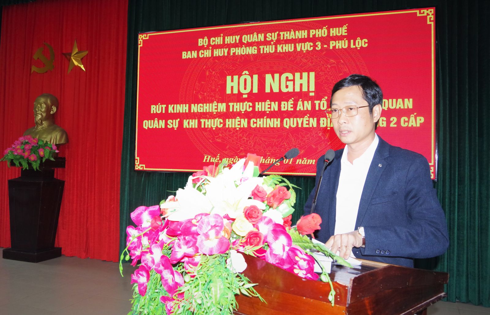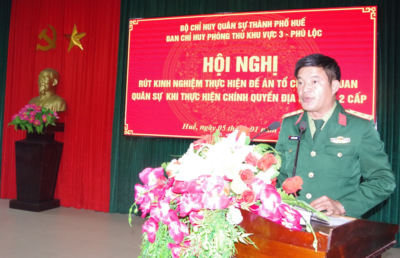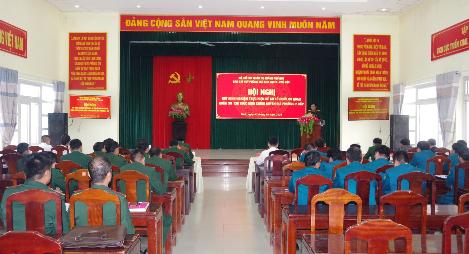 Sáng 05/1, Ban Chỉ huy Phòng thủ khu vực 3 - Phú Lộc tổ chức Hội nghị rút kinh nghiệm thực hiện Đề án tổ chức cơ quan quân sự trong quá trình triển khai mô hình chính quyền địa phương 2 cấp. Thượng tá Lê Đức - Chỉ huy trưởng Ban Chỉ huy Phòng thủ khu vực chủ trì hội nghị