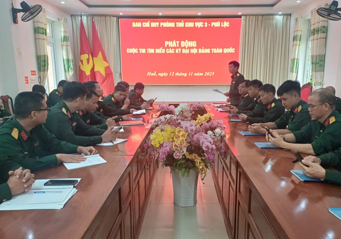 Nhằm tuyên truyền sâu rộng, nâng cao nhận thức, tư tưởng chính trị, tạo sự thống nhất hành động của cán bộ, đảng viên trong toàn đơn vị. Sáng 12/11, Ban Chỉ huy Phòng thủ khu vực 3 - Phú Lộc phát động cuộc thi tìm hiểu các kỳ Đại hội Đảng toàn quốc.