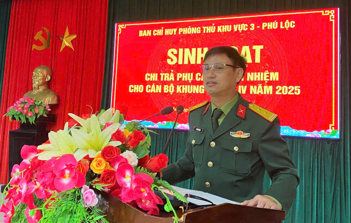 Tại buổi sinh hoạt, Đảng uỷ, Ban Chỉ huy Phòng thủ khu vực 3 - Phú Lộc đã quán triệt các văn bản các cấp và thông báo cho cán bộ, quân nhân dự bị được bổ nhiệm giữ chức vụ chỉ huy và sắp xếp vào các đơn vị lực lượng dự bị động viên của 13 xã phường trên địa bàn về tình hình thực hiện nhiệm vụ quân sự quốc phòng của địa phương trong thời gian qua, đồng thời triển khai và thực hiện chi trả đầy đủ, kịp thời chế độ phụ cấp trách nhiệm theo đúng quy định.