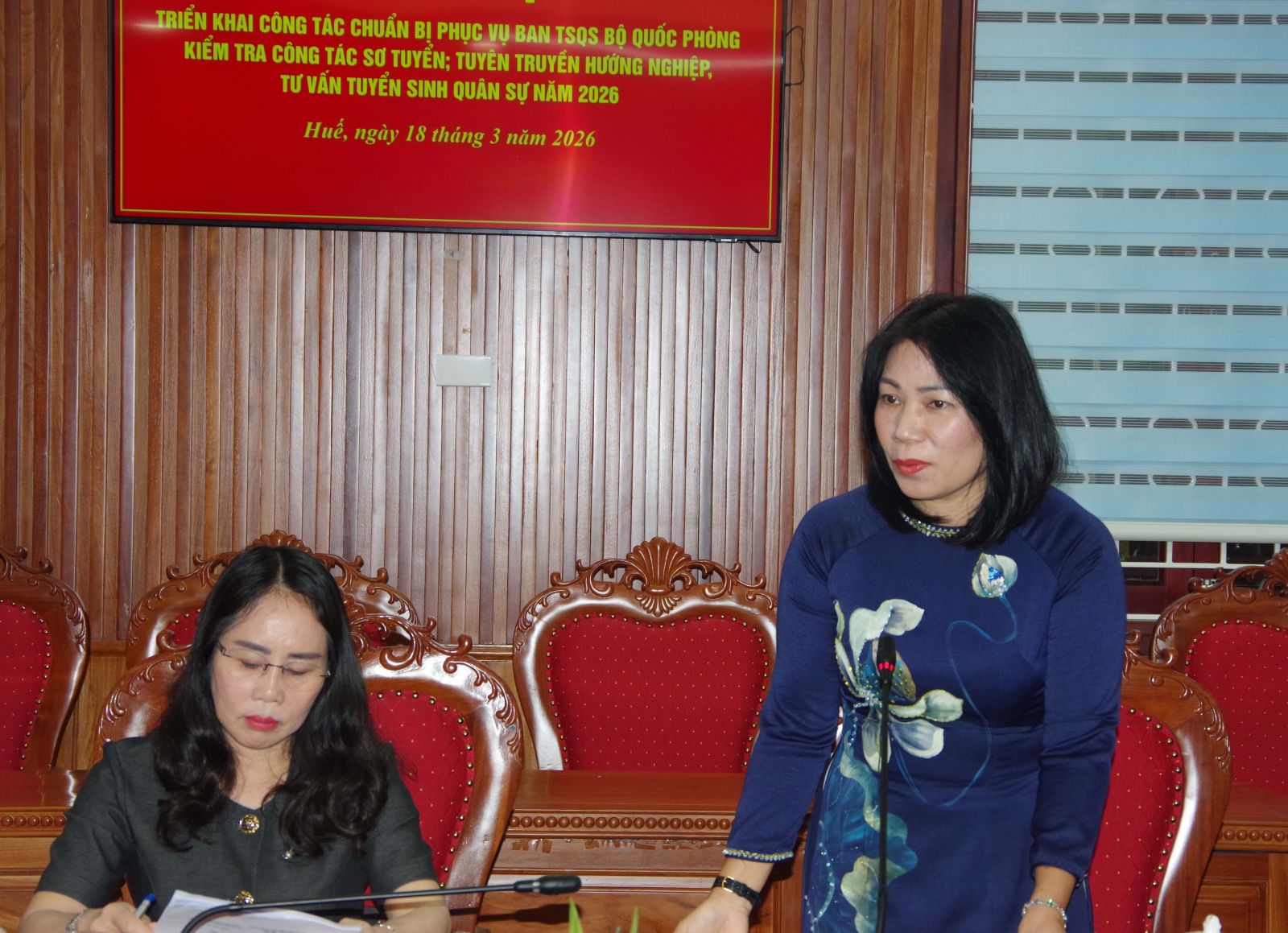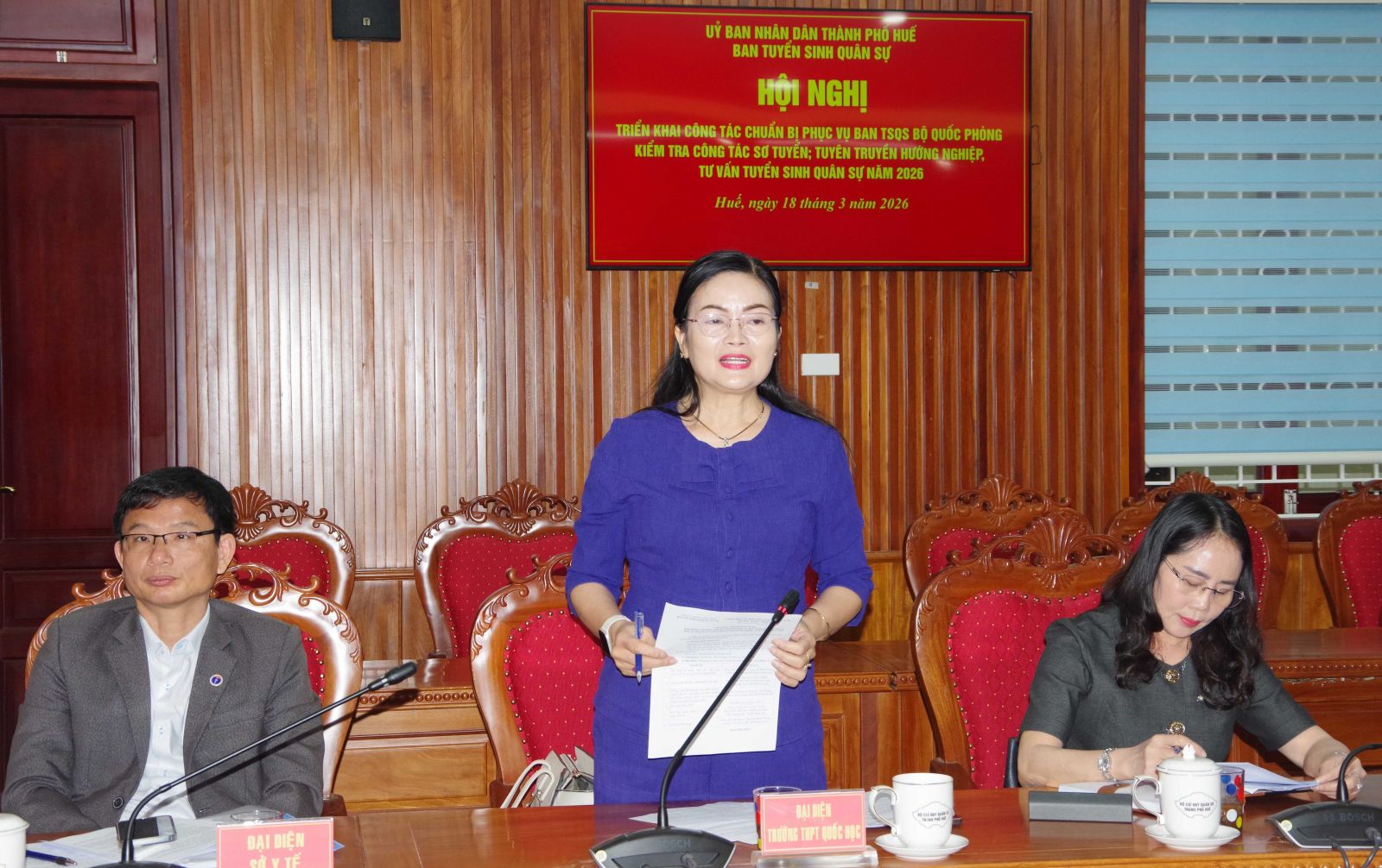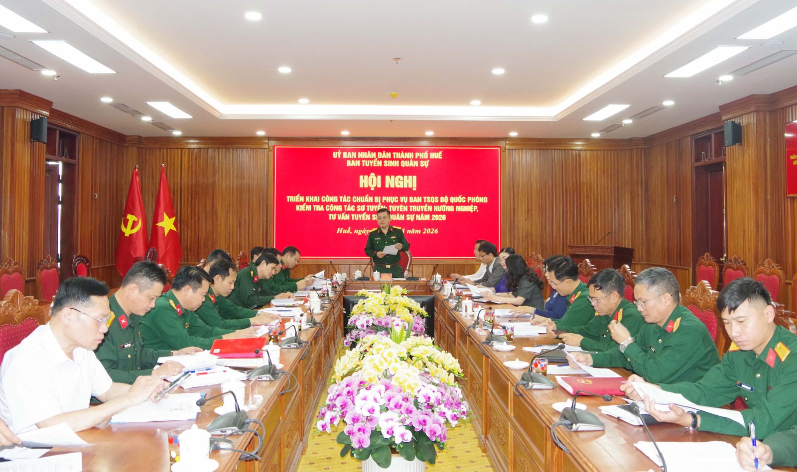 Đối với Bộ CHQS thành phố là cơ quan thường trực cần chủ động phối hợp chặt chẽ với với Sở giáo dục và đào tạo, Sở y tế và các đơn vị liên quan để triển khai làm tốt mọi công tác chuẩn bị từ nội dung, chương trình đến hệ thống hồ sơ, sổ sách, tài liệu kiểm tra và các địa điểm tuyển sinh nhằm bảo đảm thuận lợi nhất cho Đoàn công tác trong quá trình làm việc và kiểm tra tại Thành phố Huế. Đặc biệt phối hợp chặt chẽ với Trường Đại học văn hoá nghệ thuật Quân đội, Sở giáo dục và đào tạo và các đơn vị liên quan tổ chức xây dựng kịch bản, chương trình, nội dung tuyên truyền hướng nghiệp, tư vấn tuyển sinh cho học sinh khối 12 tại điểm Trường THPT Quốc học Huế bảo chặt chẽ, chu đáo và chất lượng. Theo kế hoạch Đoàn Ban Tuyển sinh quân sự Bộ quốc phòng sẽ tiến hành kiểm tra vào cuối tháng 3 năm 2026./.