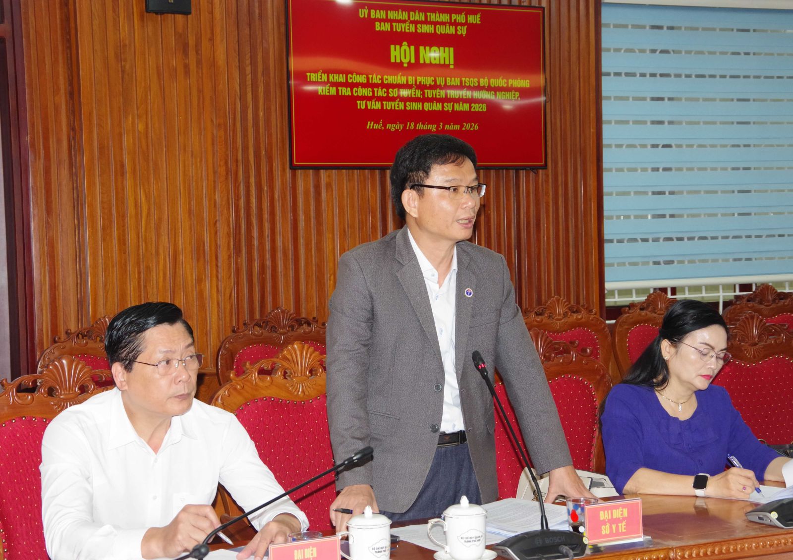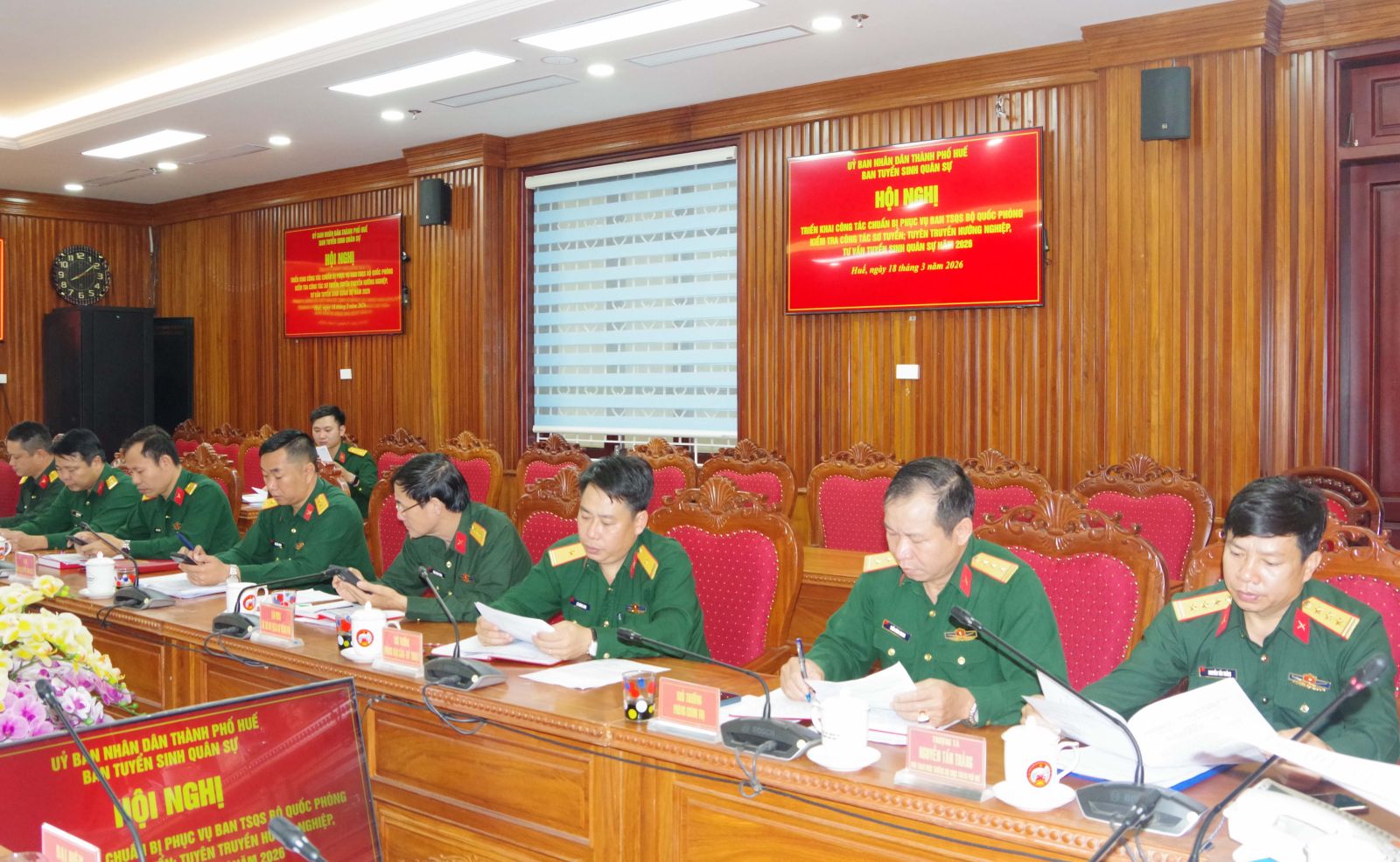 Để bảo đảm phục vụ Đoàn công tác của Ban tuyển sinh quân sự Bộ quốc phòng kiểm tra công tác tuyển sinh tại Thành phố Huế được chặt chẽ, chú đáo. Sáng ngày 18/3, Ban tuyển sinh quân sự Thành phố đã tổ chức hội nghị hiệp đồng, triển khai công tác chuẩn bị phục vụ Đoàn kiểm tra của Bộ quốc phòng kiểm tra công tác sơ tuyển, tuyên truyền hướng nghiệp, tư vấn tuyển sinh quân sự năm 2026. Đại tá Lê Huy Nghĩa – Phó Chỉ huy trưởng, Tham mưu trưởng Bộ CHQS thành phố, Phó Trưởng ban tuyển sinh quân sự thành phố chủ trì hội nghị.