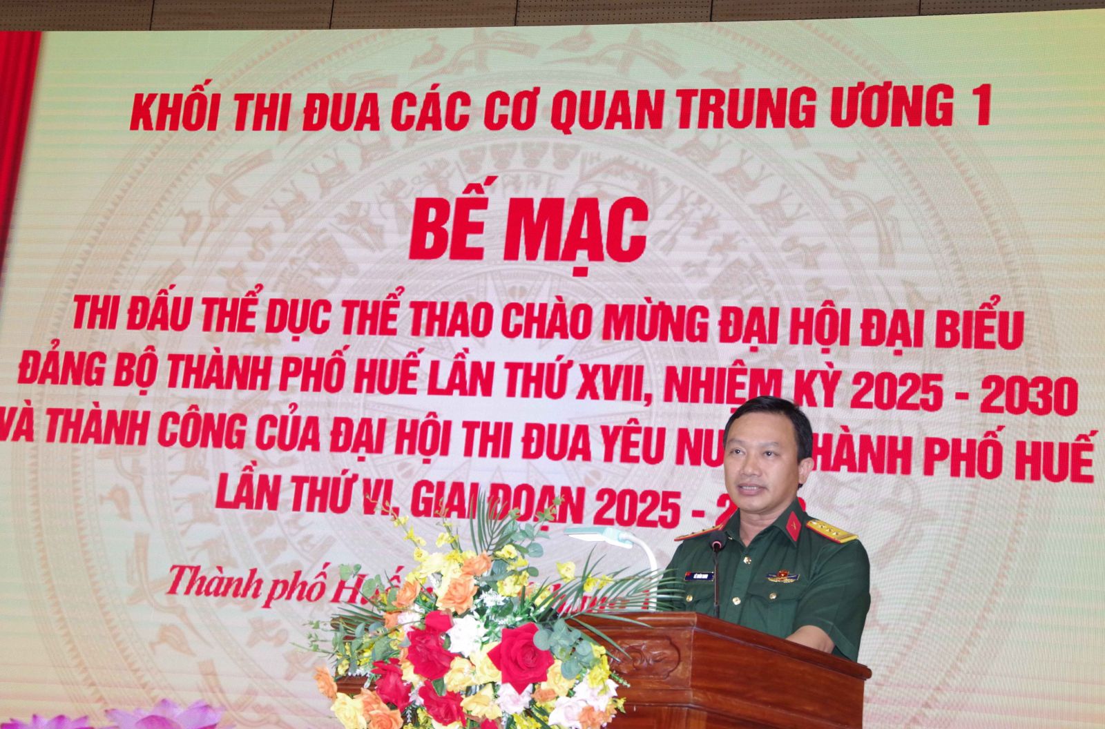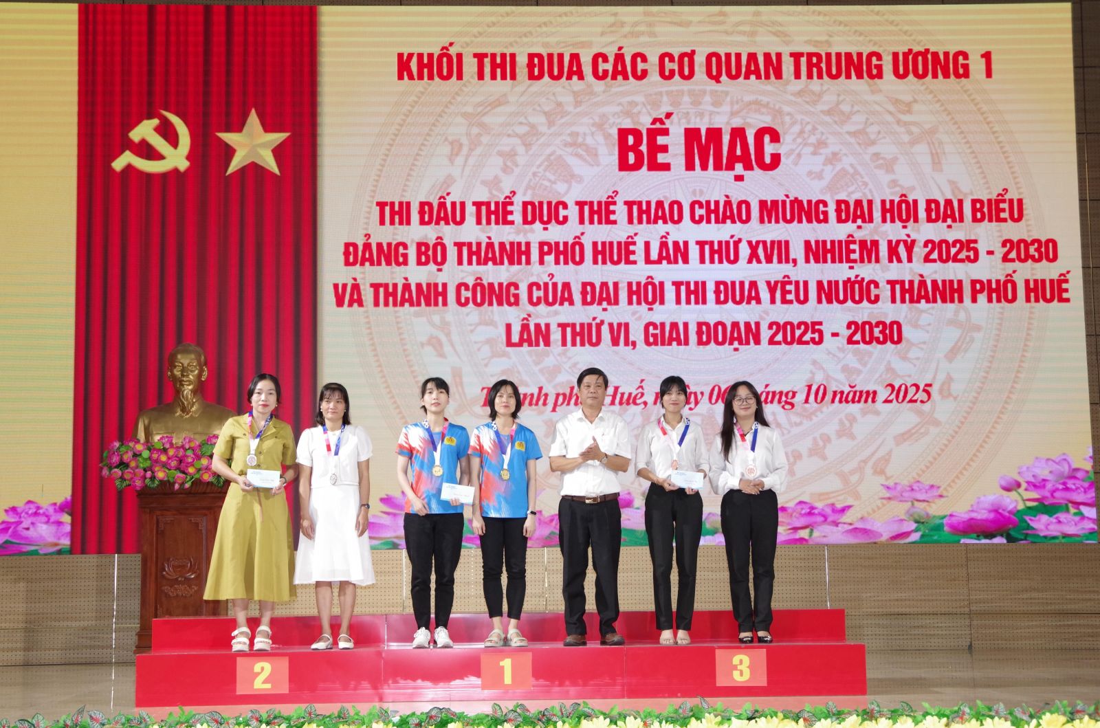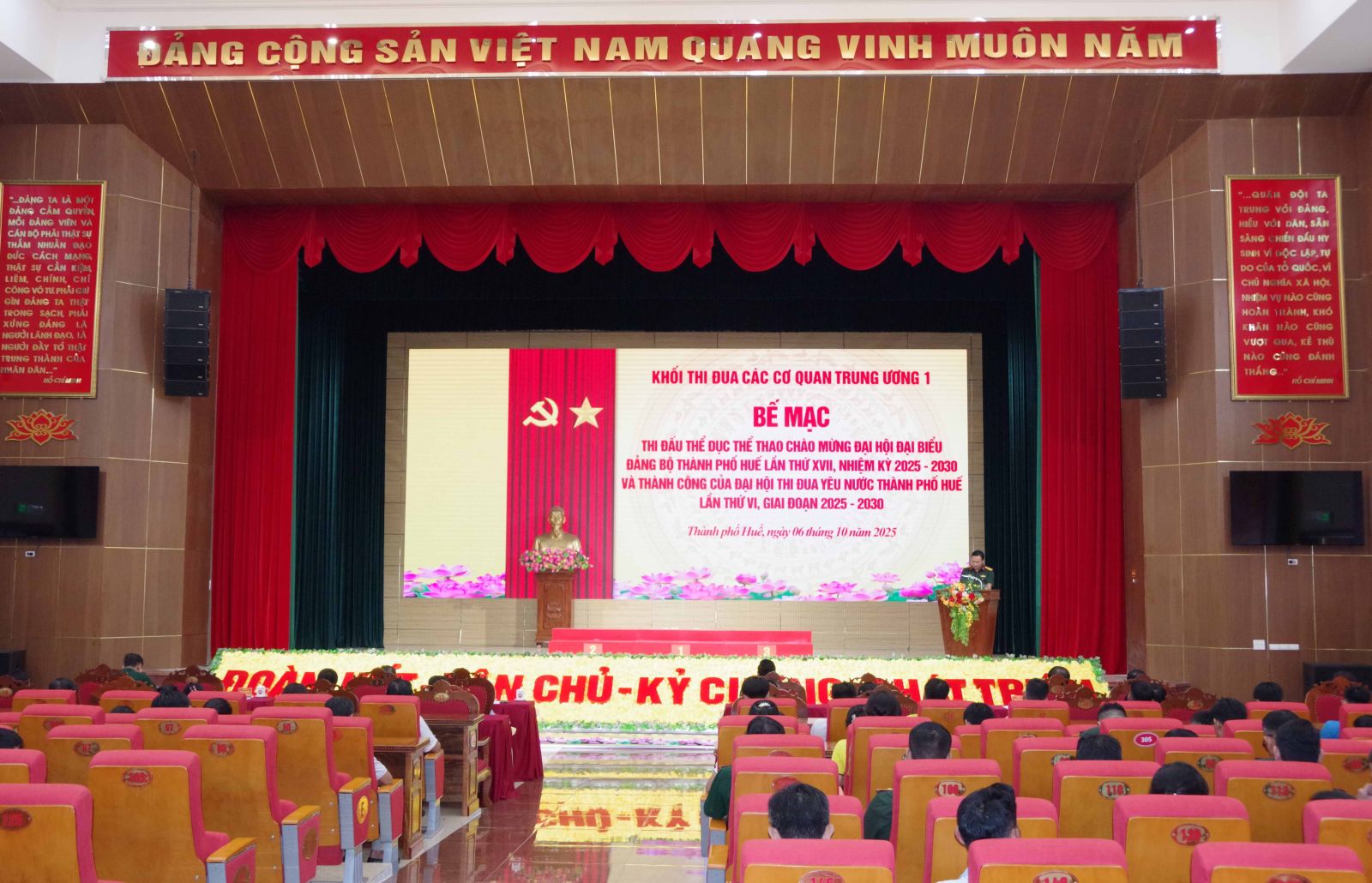Chiều ngày 06/10, Khối thi đua các cơ quan Trung ương 1 đã tổ chức bế mạc và trao giải, giải đấu thể dục thể thao nhằm thiết thực chào mừng Đại hội Đại biểu Đảng bộ Thành phố lần thứ XVII, nhiệm kỳ 2025 – 2030 và thành công của Đại hội thi đua yêu nước Thành phố lần thứ VI, giai đoạn 2025 – 2030.