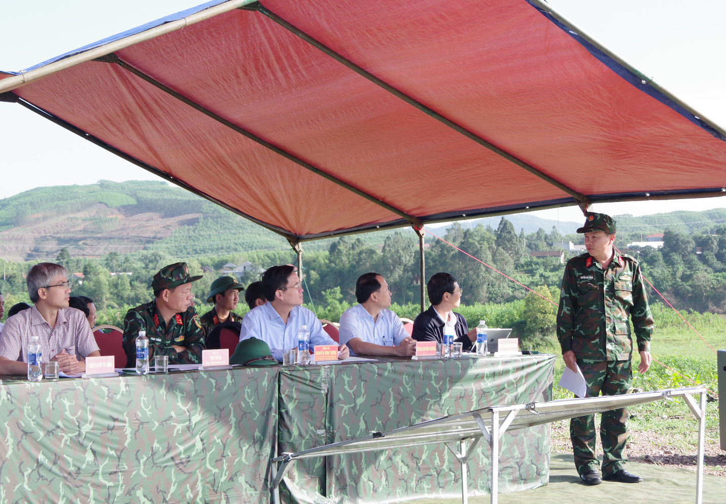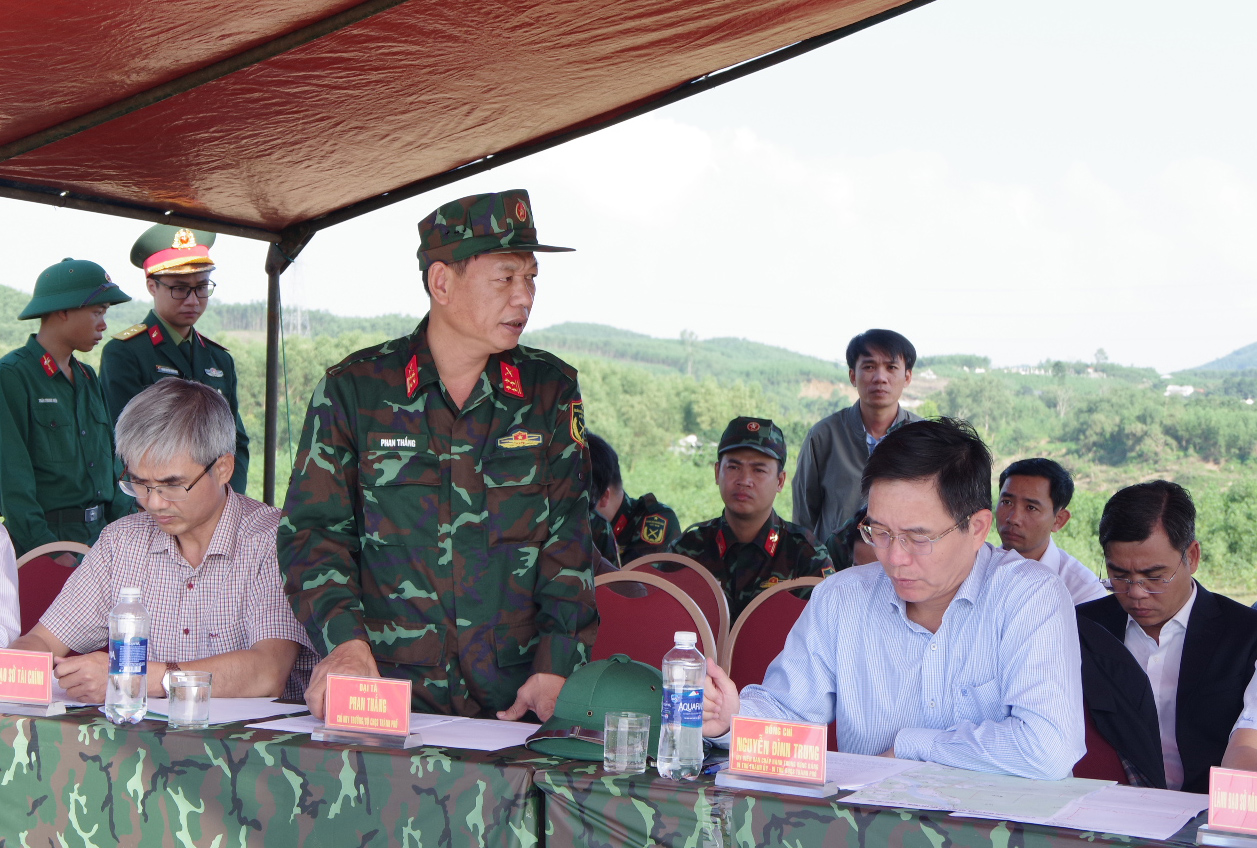 Theo báo cáo của Bộ CHQS thành phố, khu vực dự kiến triển khai bố trí, xây dựng sở chỉ huy huấn luyện, diễn tập khu vực phòng thủ thành phố tại địa bàn phường Phú Bài, đây là vị trí đã được khảo sát kỹ lưỡng và đã được Bộ tư lệnh Quân khu 4 nhất trí và thông qua. Với tổng diện tích 200ha được bố trí 5 phân khu gồm: Ban Chỉ đạo, Thành ủy, UBND thành phố, Bộ CHQS thành phố, Công an thành phố, cùng các hạng mục quan trọng khác; vị trí này thuận lợi về nhiều mặt, bảo đảm về chiến thuật, thế trận phòng thủ và yếu tố bí mật...