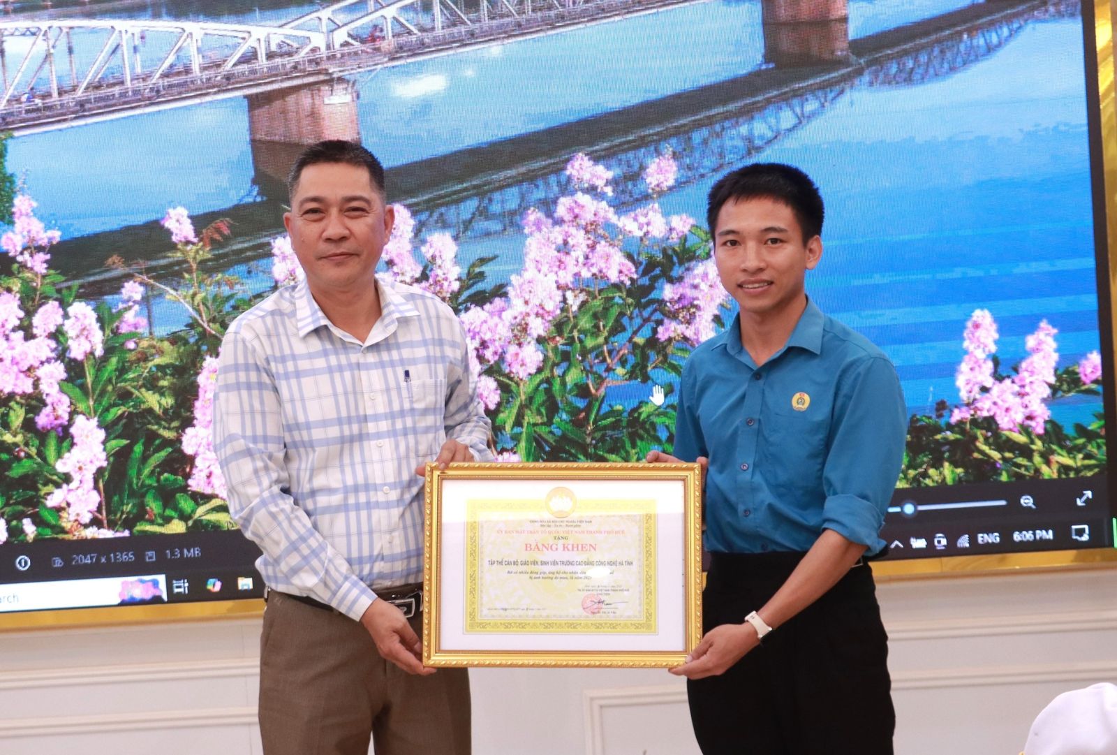 Tại buổi gặp mặt, lãnh đạo Ủy Ban mặt trận Tổ quốc Việt Nam thành phố đã trao Bằng khen tặng Tập thể cán bộ, giáo viên, sinh viên Trường Cao đẳng Công nghệ Hà Tĩnh vì có nhiều đóng góp, ủng hộ cho nhân dân thành phố Huế bị ảnh hưởng do mưa, lũ năm 2025. Bộ CHQS thành phố trao quà tặng cán bộ, giáo viên, sinh viên Trường Cao đẳng Công nghệ Hà Tĩnh và các tập thể, cá nhân. Trường Đại học Nông Lâm (Đại học Huế) trao thư cảm ơn Bộ CHQS thành phố cùng các đơn vị; Ban Chấp hành Hội sinh viên Trường Đại học Nông Lâm trao Giấy khen tặng 18 cá nhân là các đồng chí chiến sĩ các đơn vị thuộc Bộ CHQS thành phố và sinh viên Trường Cao đẳng Công nghệ Hà Tĩnh./.