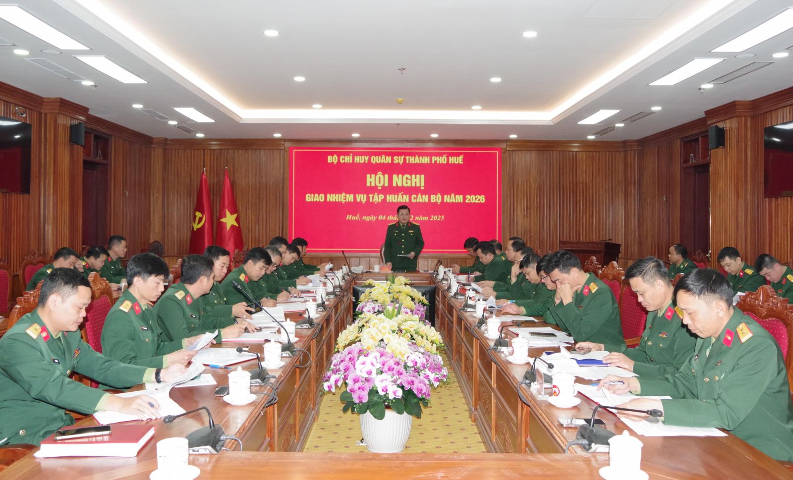 Để triển khai thực hiện hiệu quả công tác tập huấn cán bộ năm 2026. Sáng ngày 04/12 Bộ CHQS thành phố tổ chức giao nhiệm vụ tập huấn cho các cơ quan, đơn vị. Đại tá Lê Huy Nghĩa – Phó Chỉ huy trưởng, Tham mưu trưởng Bộ CHQS thành phố chủ trì hội nghị.