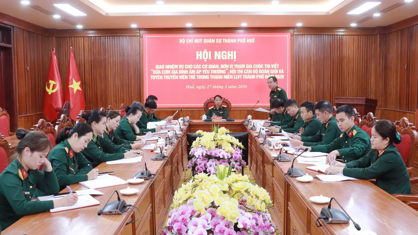 Tại hội nghị, Bộ CHQS thành phố cũng đã giao nhiệm vụ hội thi cán bộ Đoàn giỏi và tuyên truyền viên trẻ trong thanh niên lực lượng vũ trang thành phố Huế năm 2026./.