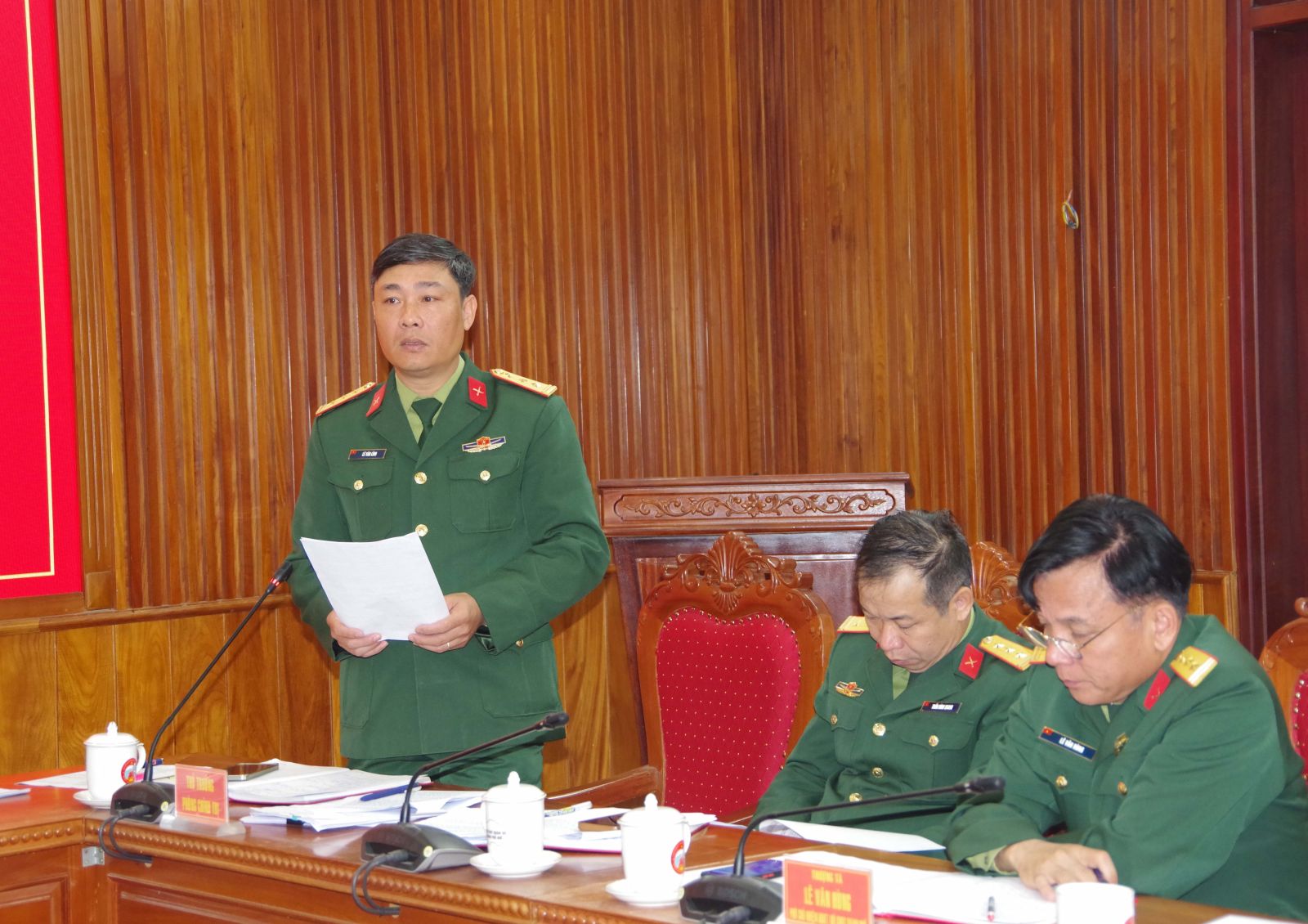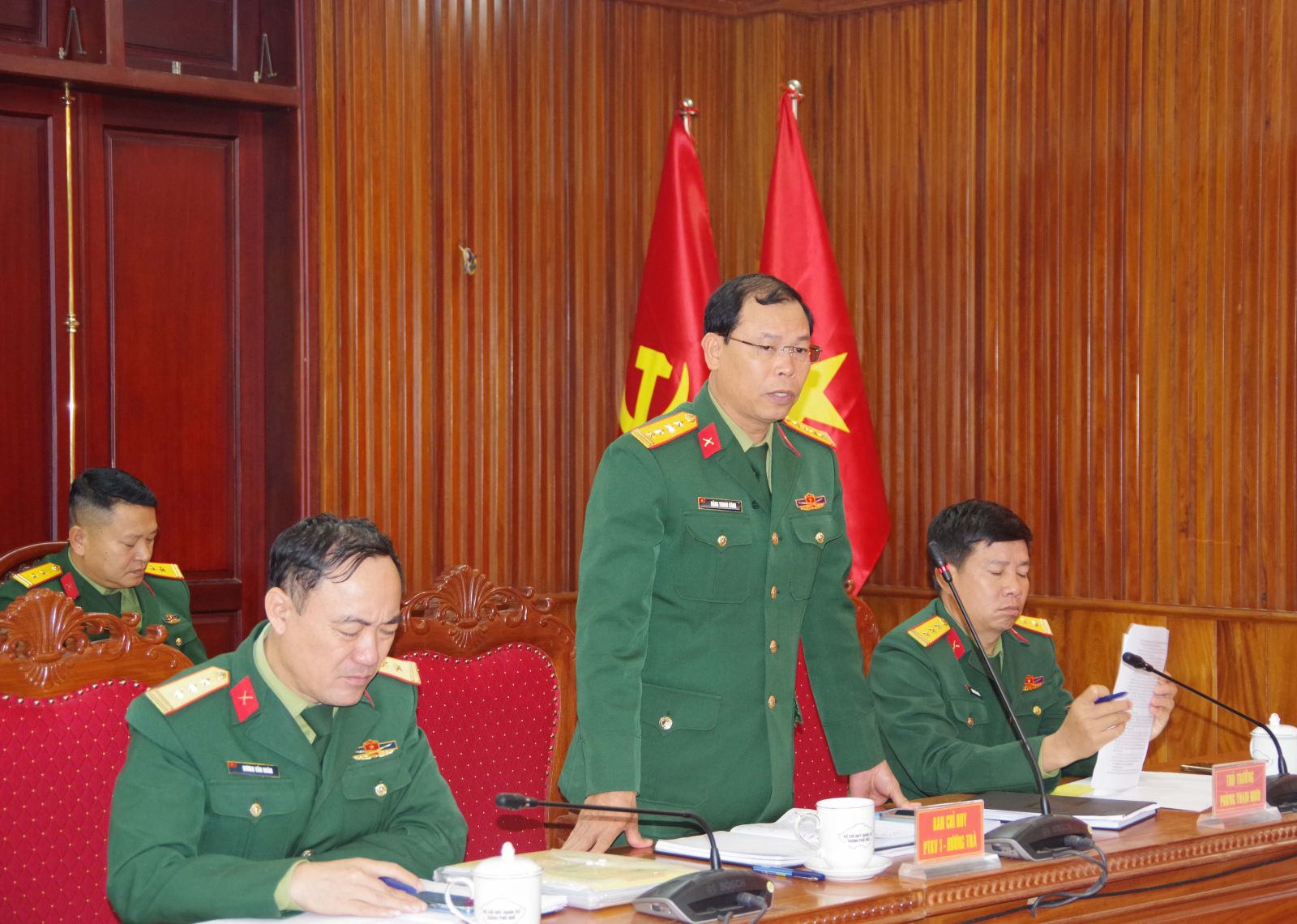 Đại tá Hà Văn Ái – Phó Chính uỷ Bộ CHQS thành phố giao nhiệm vụ cho các cơ quan, đơn vị