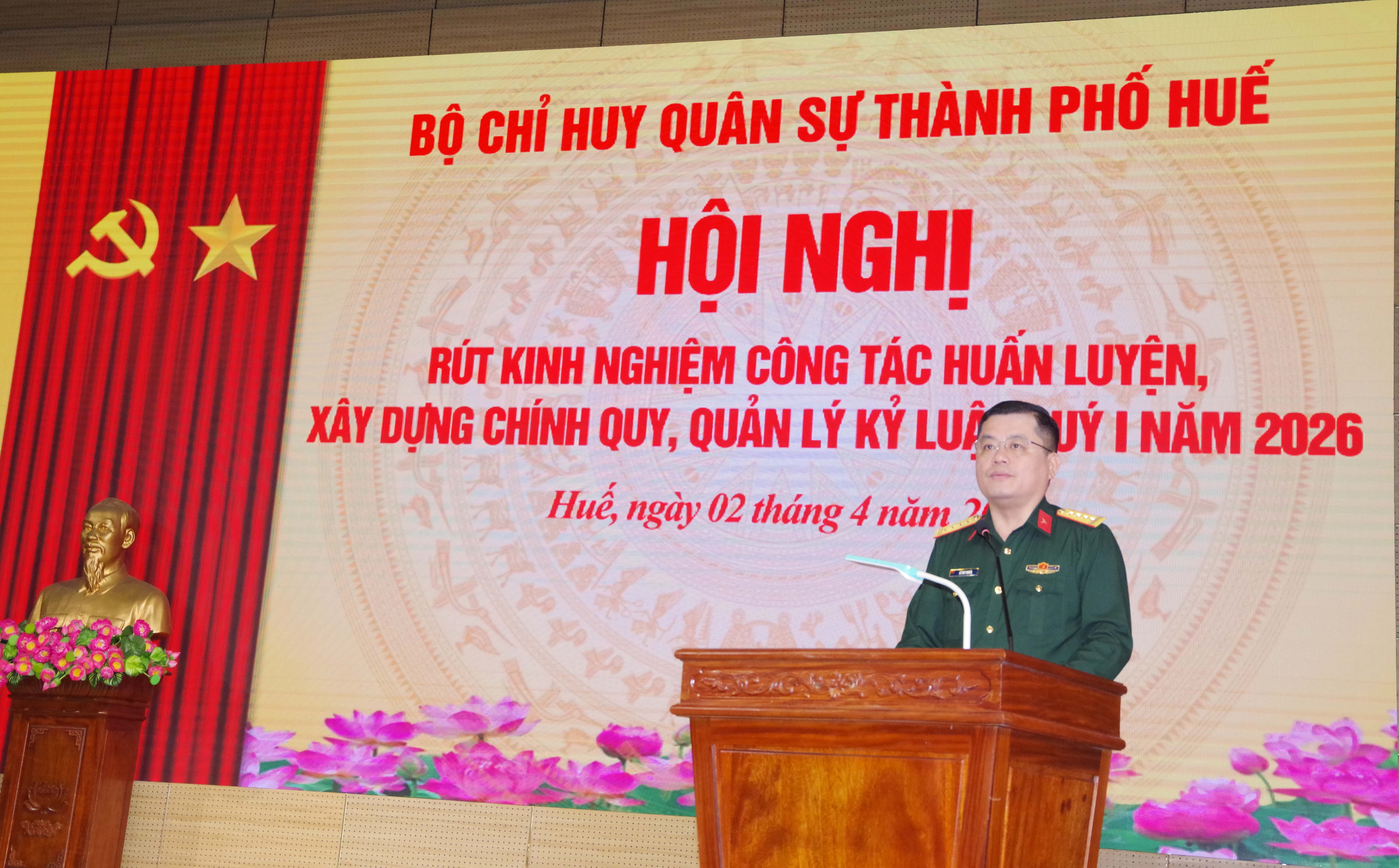Sáng ngày 02/4, Bộ CHQS thành phố tổ chức hội nghị rút kinh nghiệm công tác huấn luyện; xây dựng chính quy, quản lý kỷ luật quý 1 năm 2026. Đại tá Lê Huy Nghĩa – Phó Chỉ huy trưởng, Tham mưu trưởng Bộ CHQS thành phố chủ trì hội nghị.